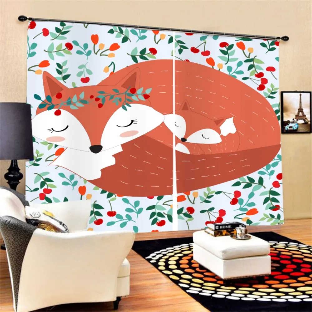 Занавески на окна с изображением лисы из мультфильма летающего орла, 100% полиэстер, занавески на окна для гостиной, спальни, 2 панели, декоративные занавески