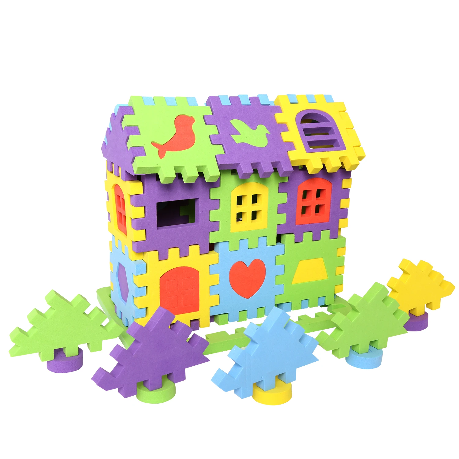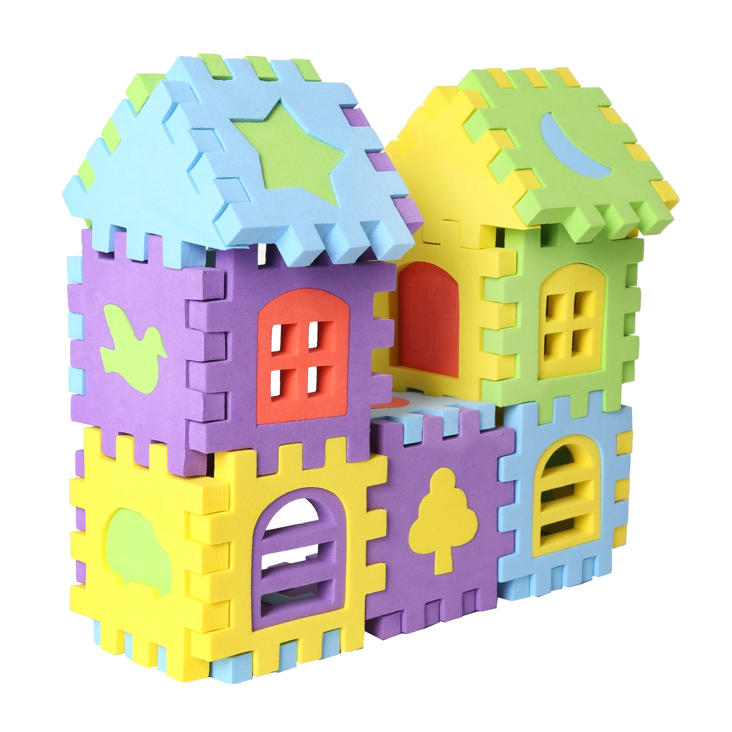 Материал: изготовлен из экологически чистого вспененный этилвинилацетат. В комплект входит: 100 шт. строительных блоков разных цветов и форм. Особенность: легко собрать и взять. Безопасный и удовольствия. Легкий вес и безопасность для маленьких детей. Преимущество: Это забавная развивающая игрушка. Это помогает развить ум ребенка, творческие способности и мышление, а также тренировать свою гибкость рук своей собственной операцией. Этот набор также является забавным способом для определения различных цветов и форм.