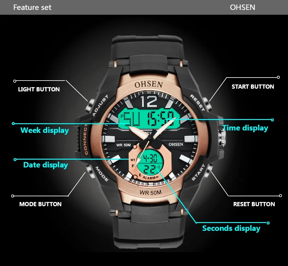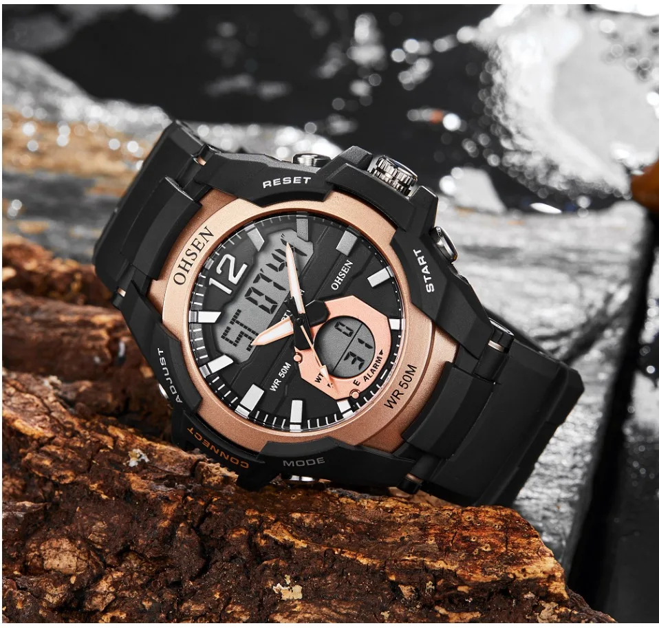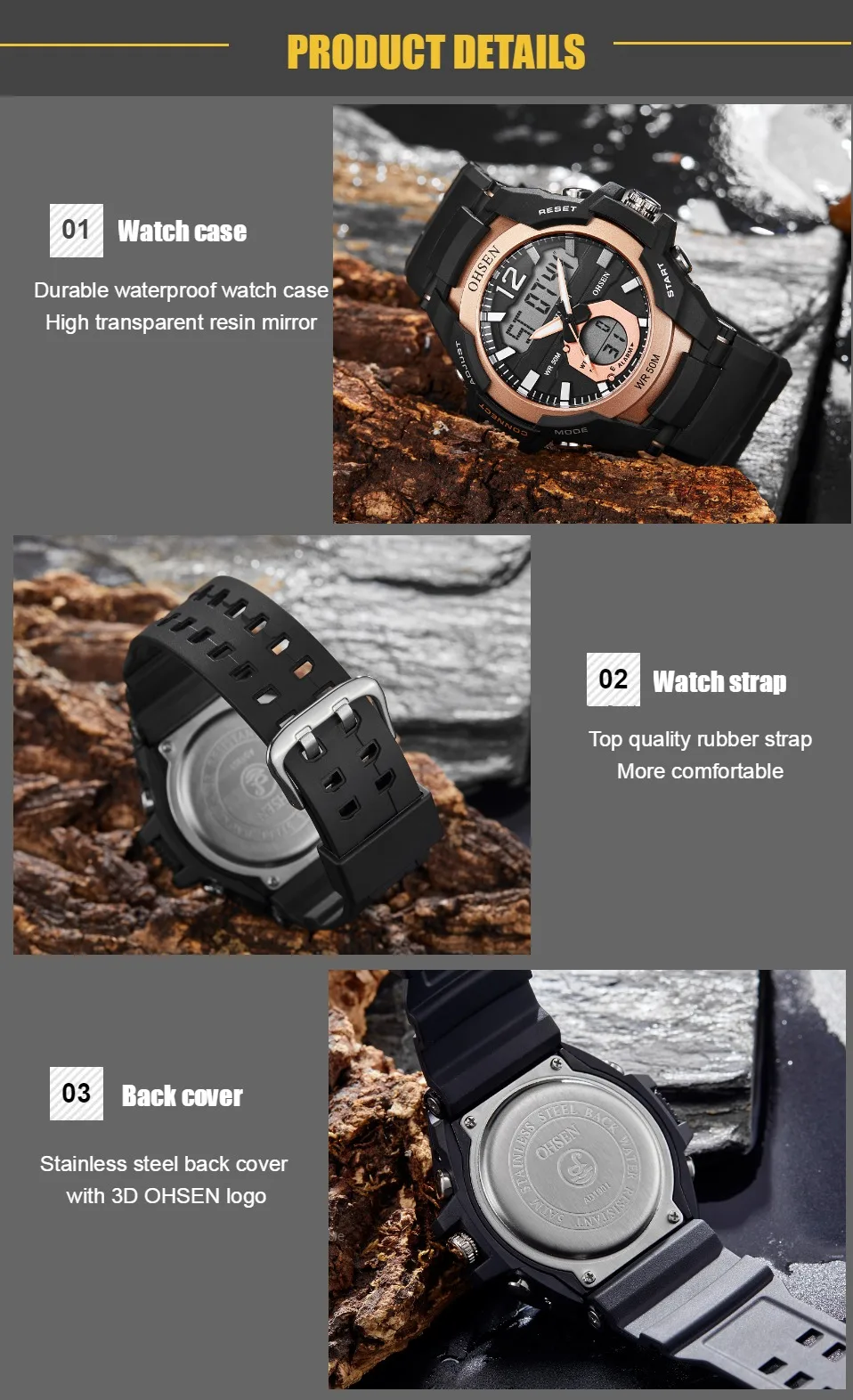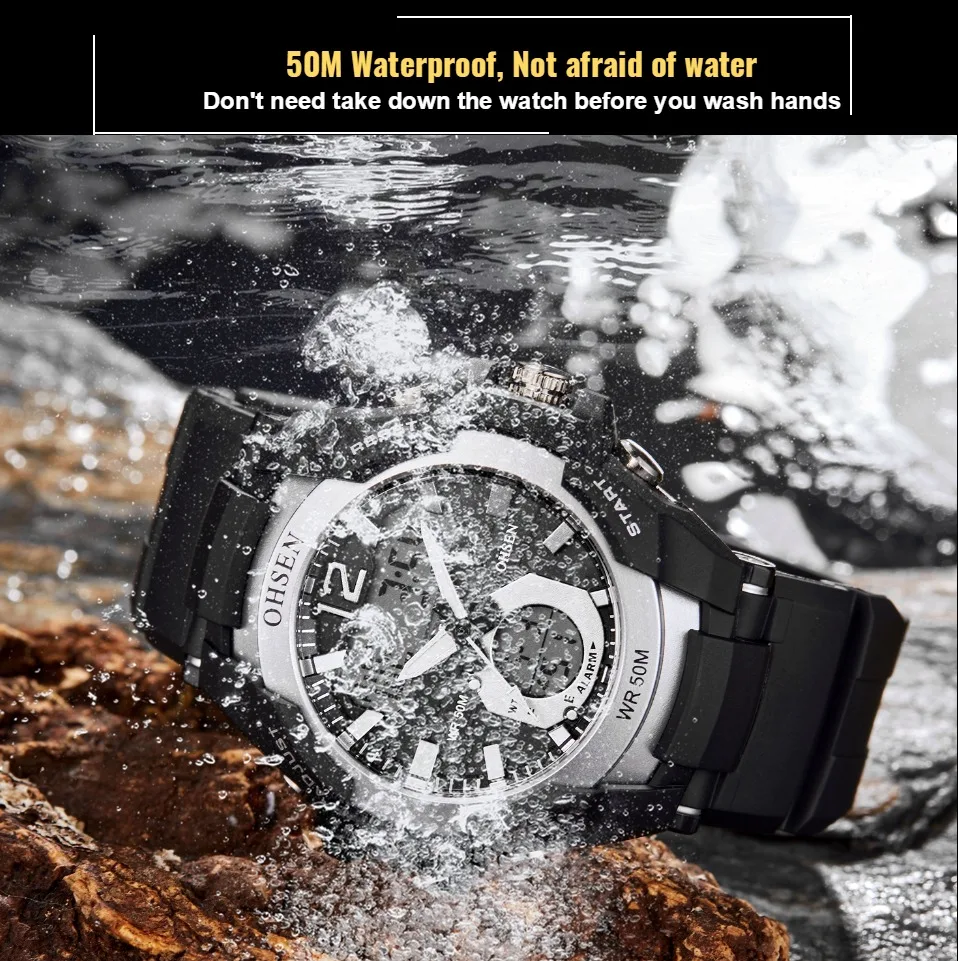 Прочный водонепроницаемый чехол Защитная пленка высокой прозрачности зеркало из смолы Качественный резиновый ремешок, более удобный Задняя крышка из нержавеющей стали с 3D логотипом OHSEN