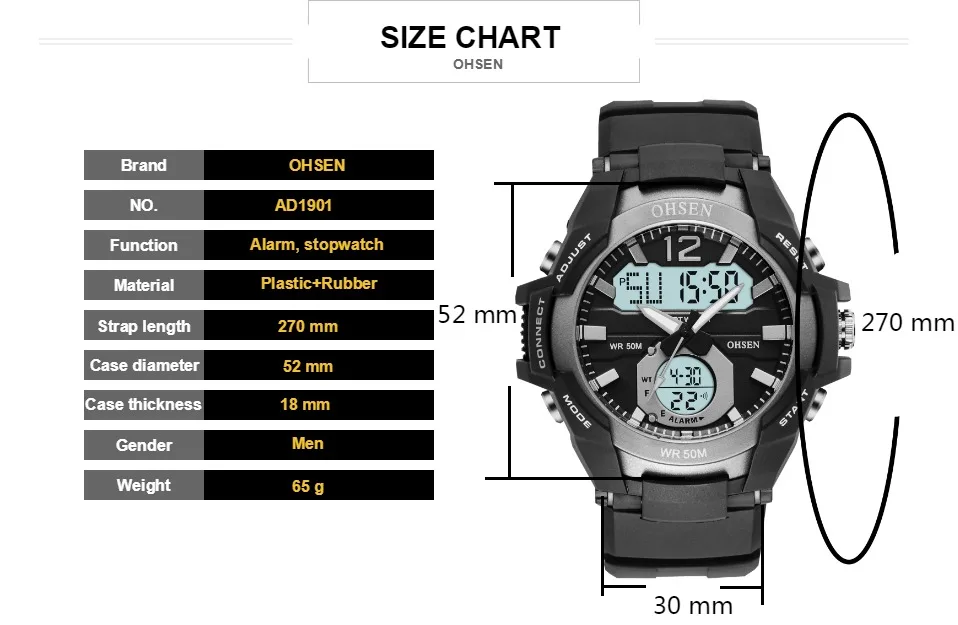 Чехол Диаметр: 52 мм/2,04'' Чехол Толщина: 18 мм/0,70'' Цвет ремешка: как на картинке Длина ремешка: 270 мм/10,62 ''(Band могут быть включены в комплект) Ширина ремешка: 30 мм/1,18 дюйма