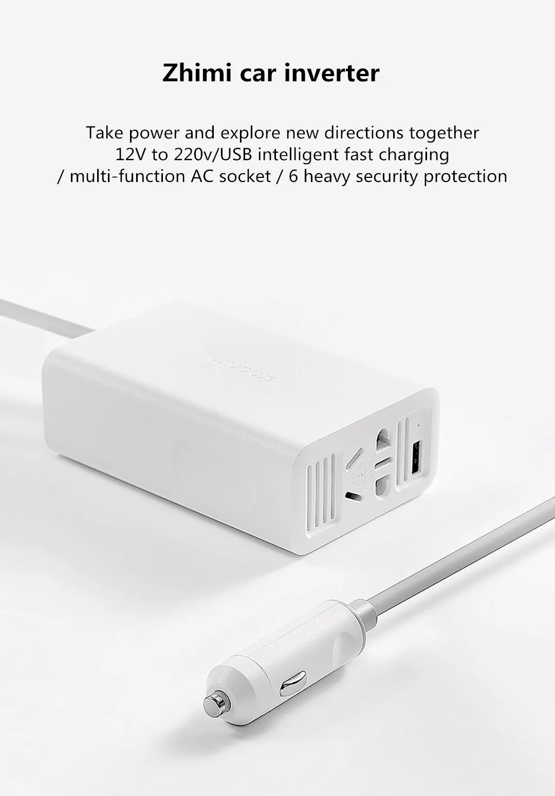 Портативное автомобильное зарядное устройство Xiaomi Mijia SMARTMI 100 Вт, преобразователь постоянного тока 12 В в переменный ток 220 В с usb-портами 5 В/2,4 А, автомобильное зарядное устройство с гнездом