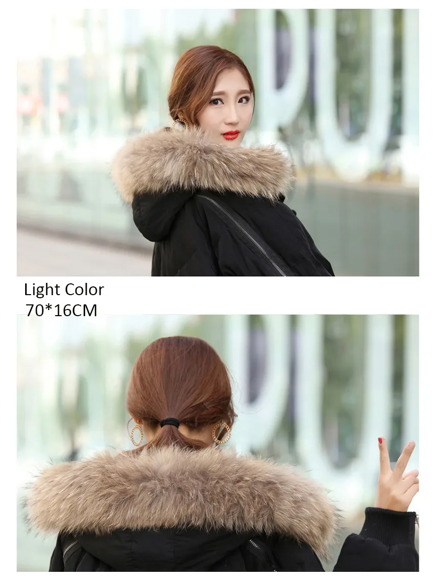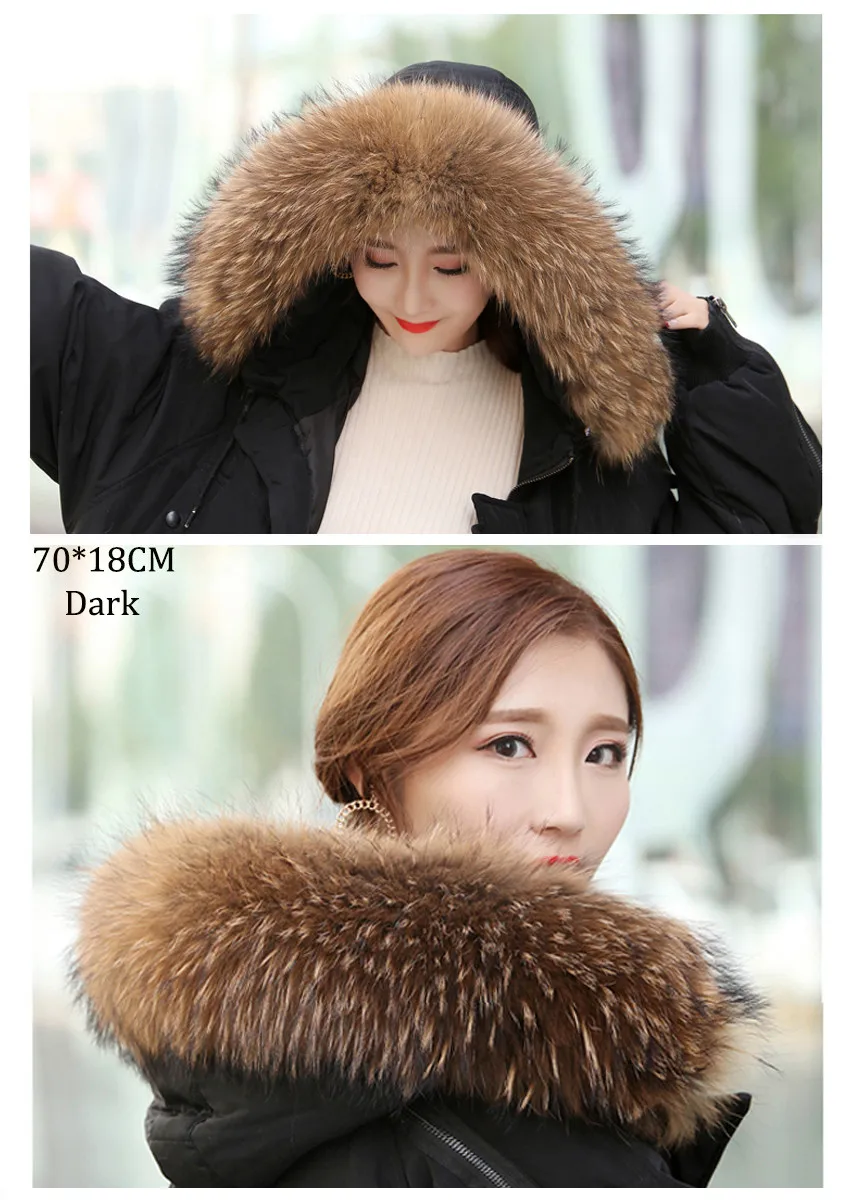 Роскошный зимний воротник из натурального меха енота, Дамский шарф, теплый пушистый мягкий платок, капюшон, мех может быть настроен по размеру.