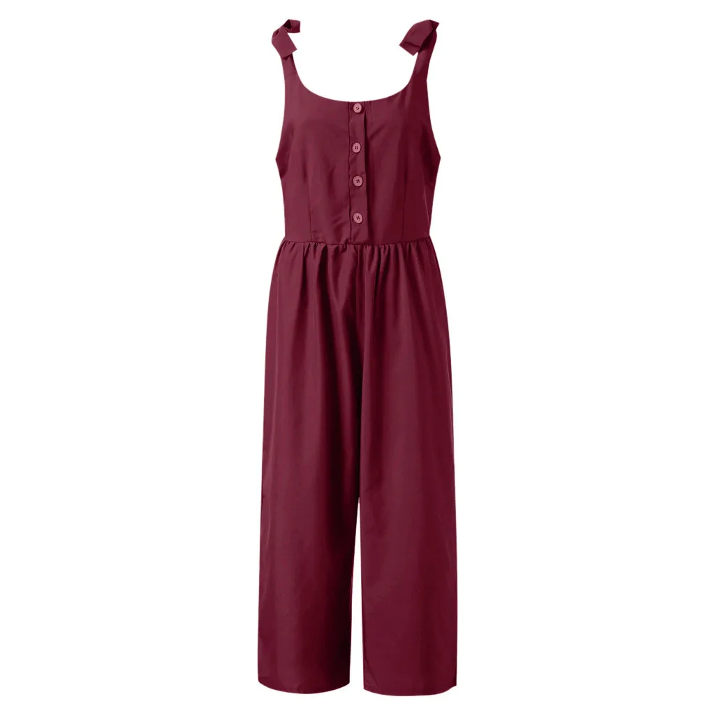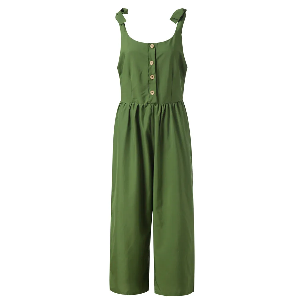 Женские хлопковые и льняные свободные комбинезоны без рукавов с карманами