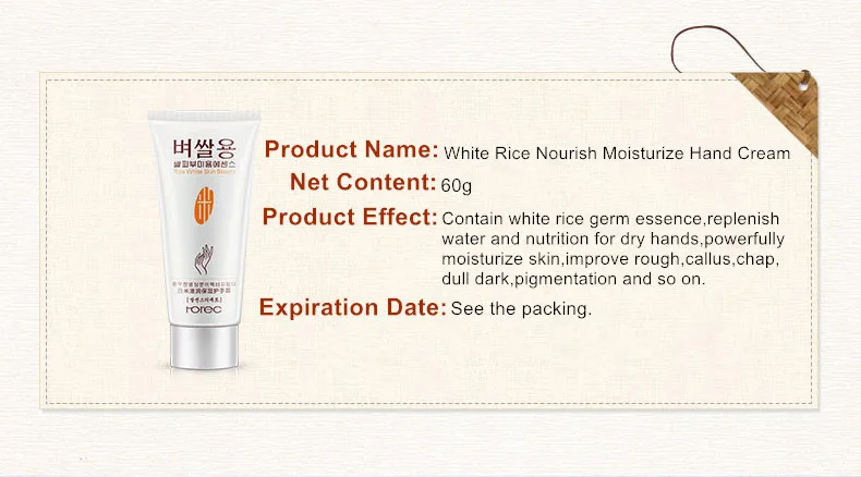 Корейская косметика Horec белый рис увлажняющий крем для рук анти сухой против трещин s против трещин питает крем для рук увлажняющий