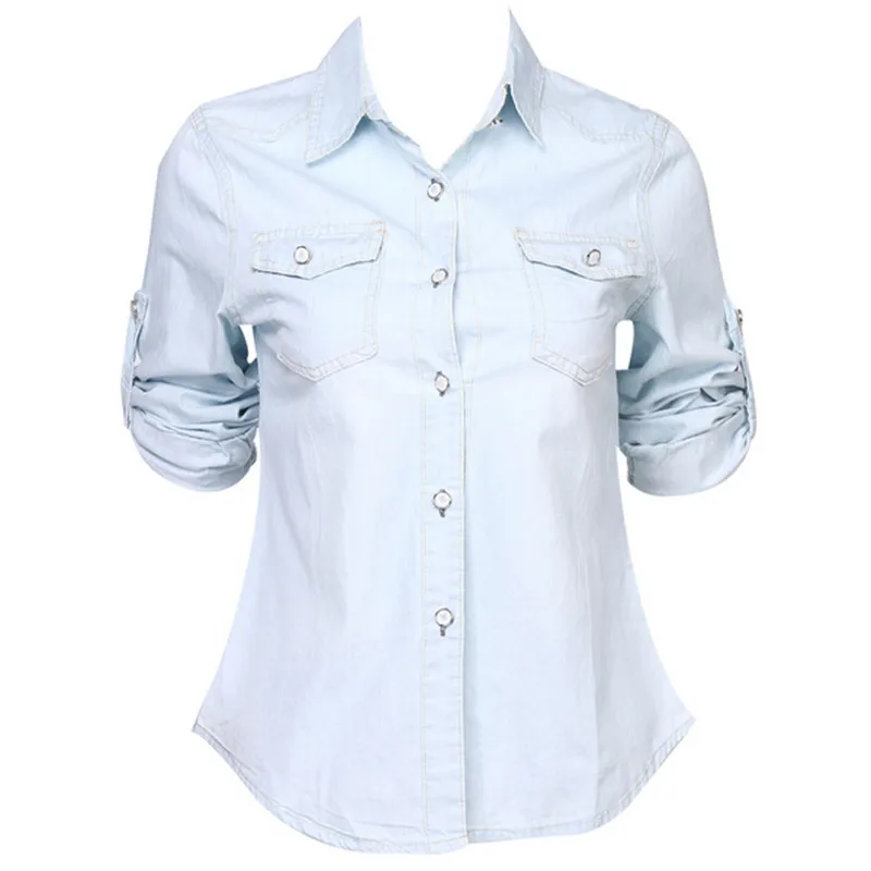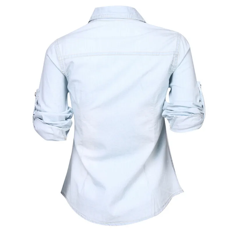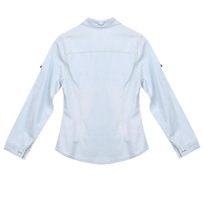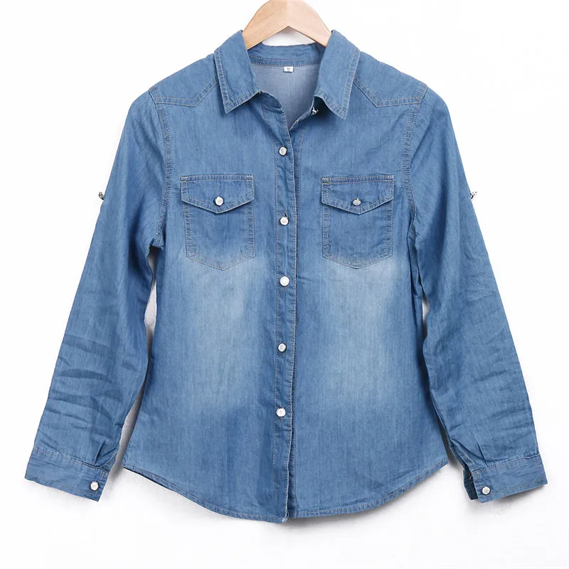 Новинка 2019, лидер продаж, Повседневная Женская Джинсовая блузка, осенняя свободная приталенная джинсовая рубашка с длинным рукавом, женская джинсовая одежда, женские блузки!