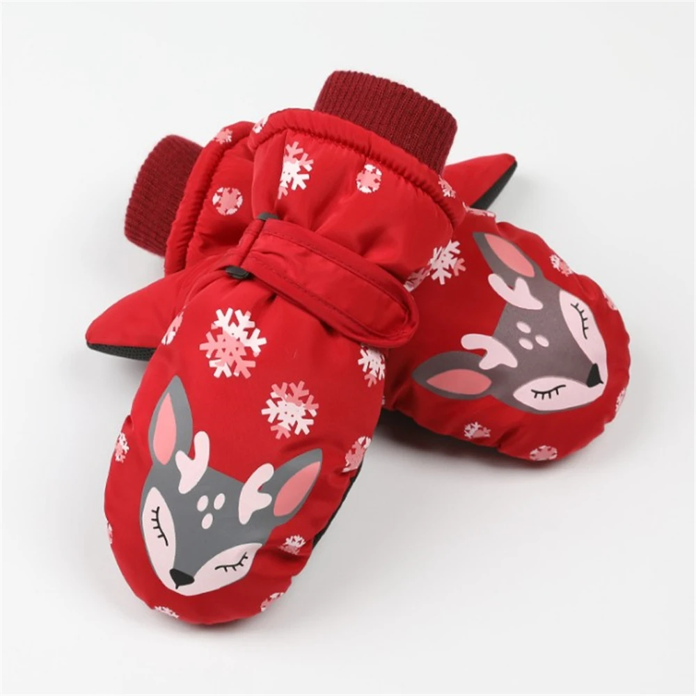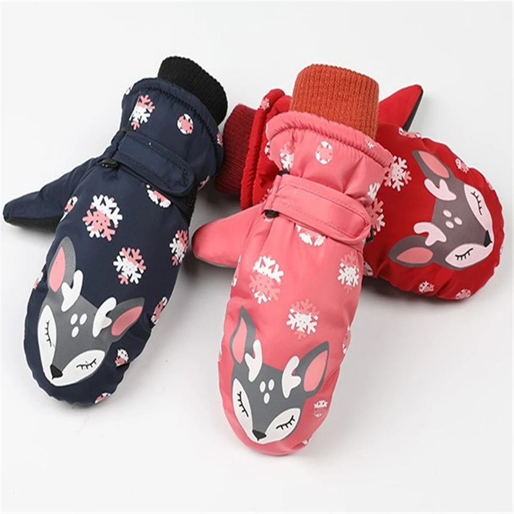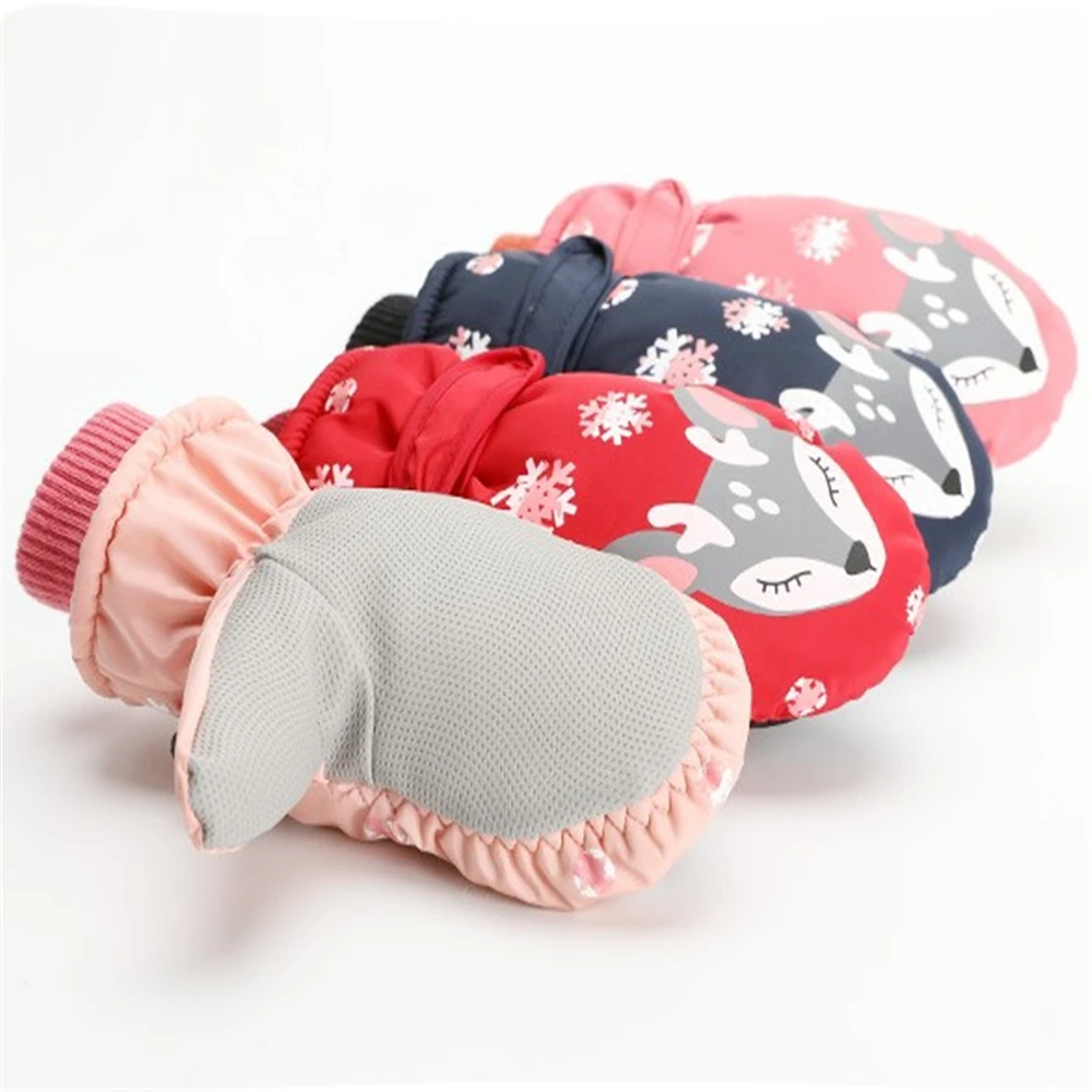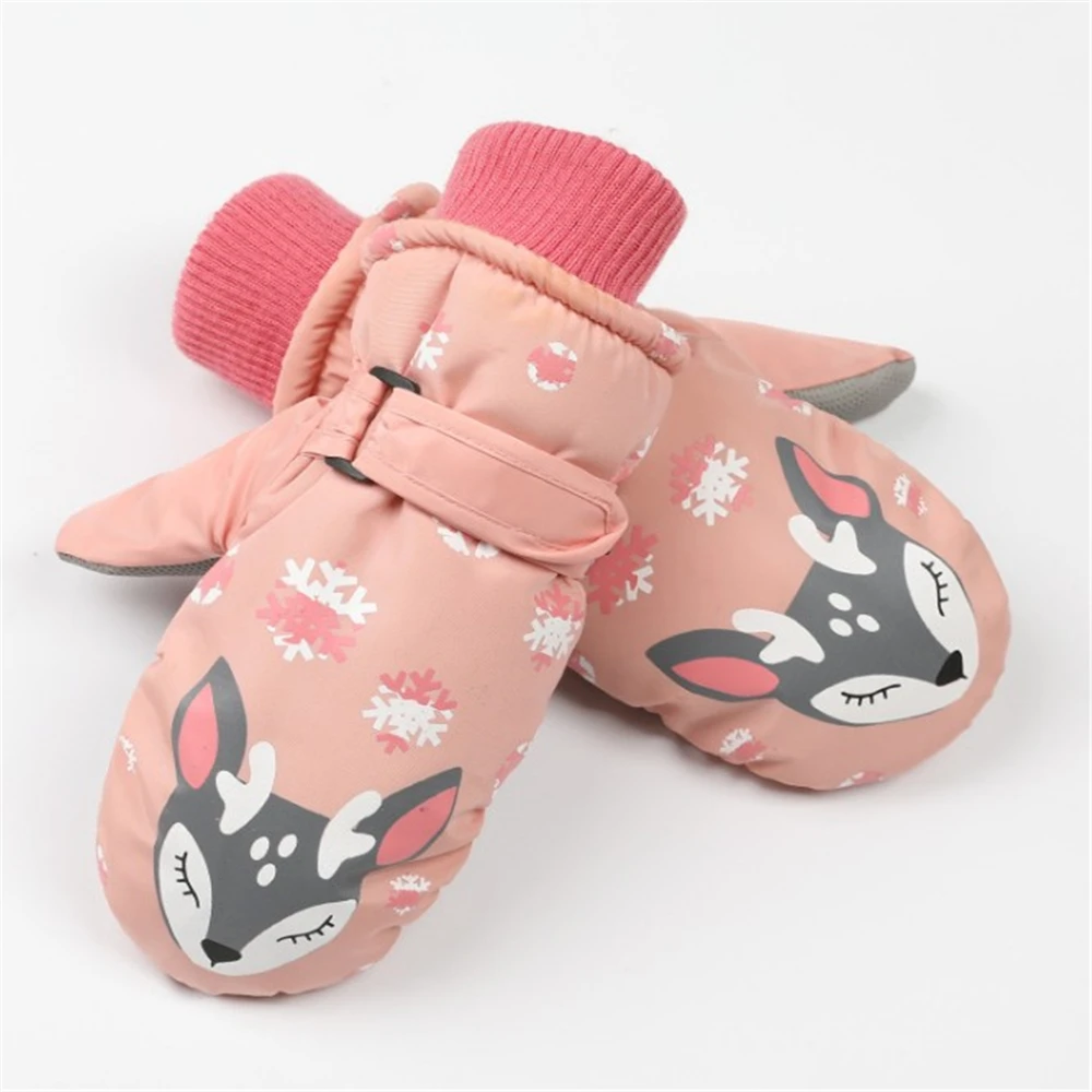 Лыжные перчатки для детей, зимние, ветрозащитные, водонепроницаемые, Нескользящие, новые, с рисунком лисы, уличные, детские, трехслойные, теплые перчатки, 2019, розовые, хит продаж 30
