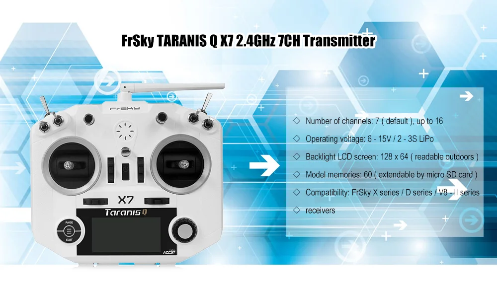 Совместимость: приемники FrSky X series/D series/V8-II (плюс другие приемники, если используется внешний модуль)