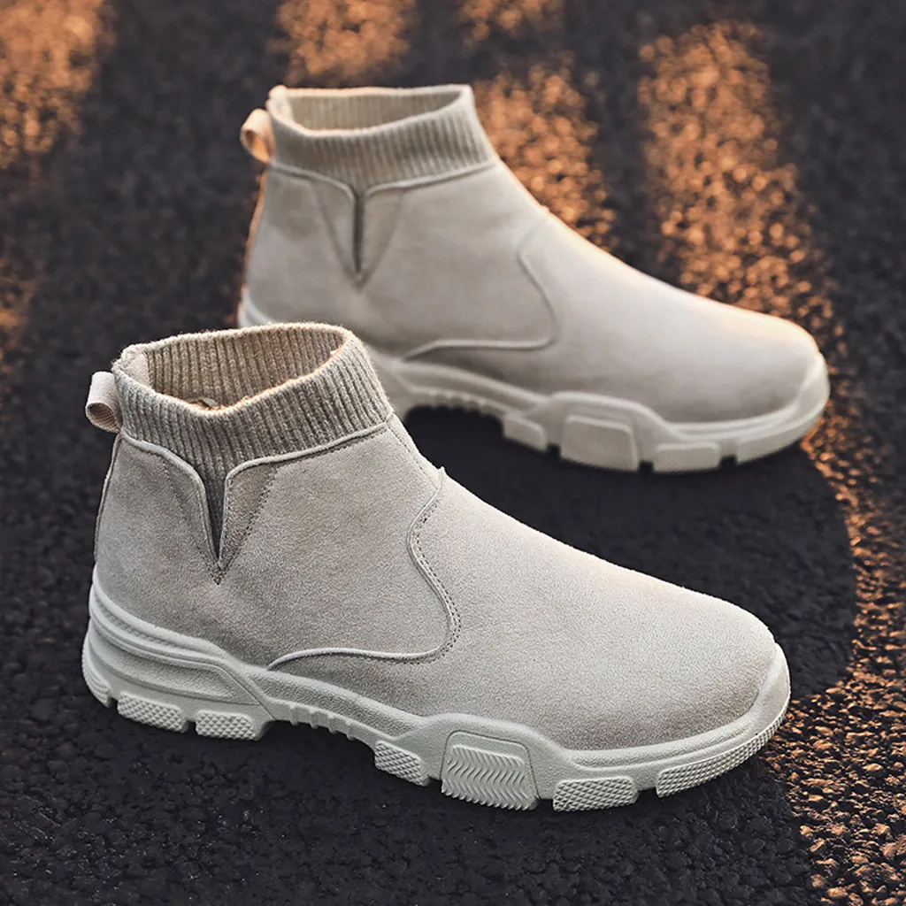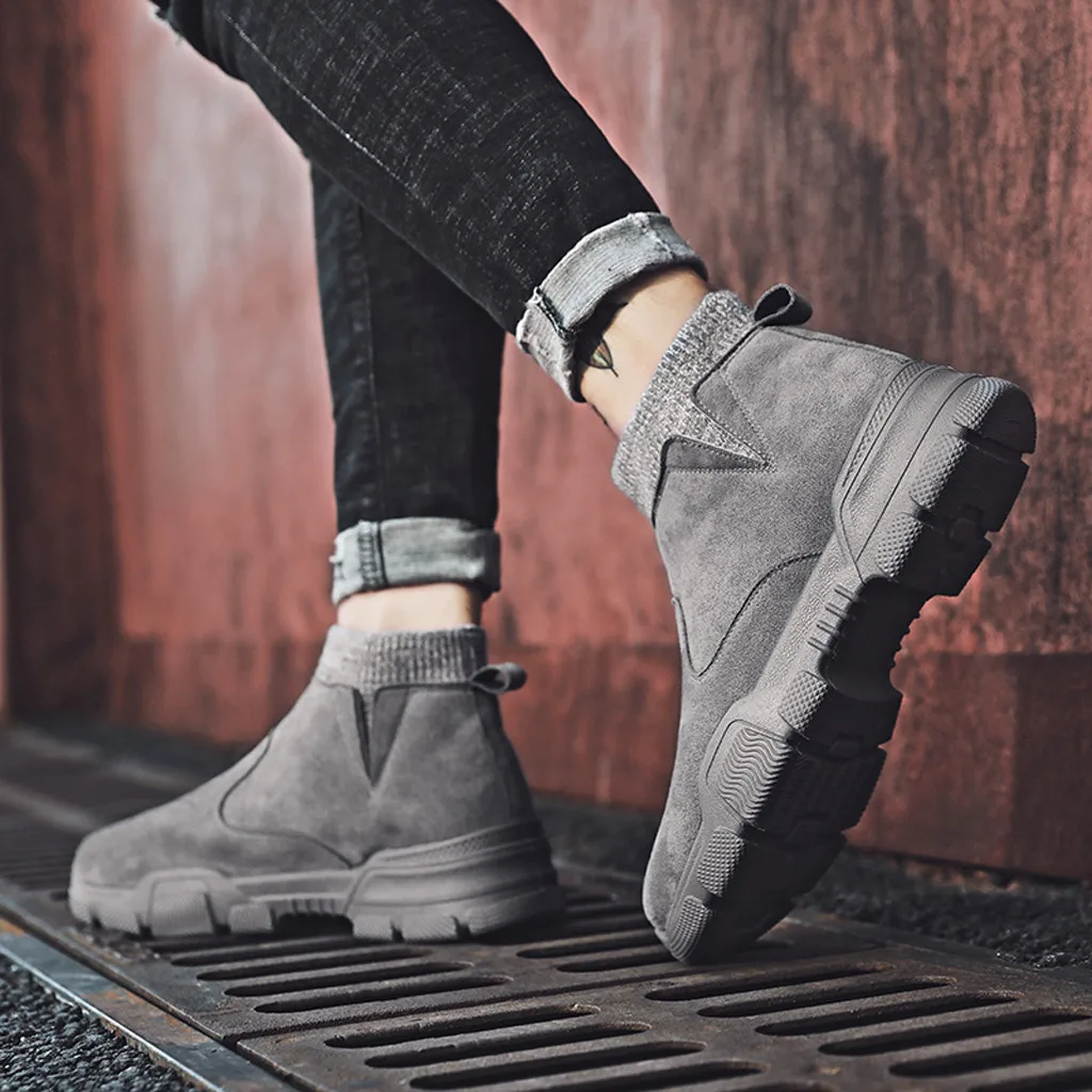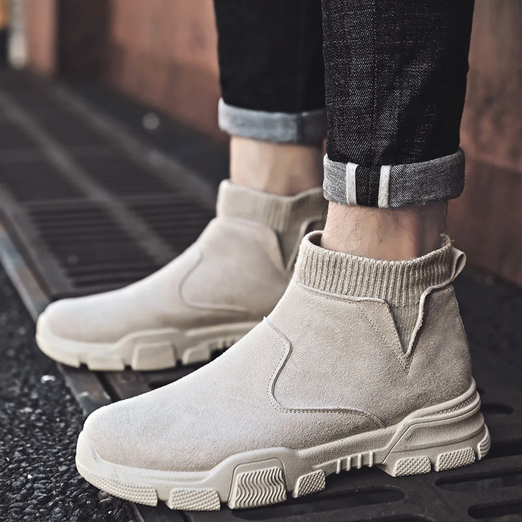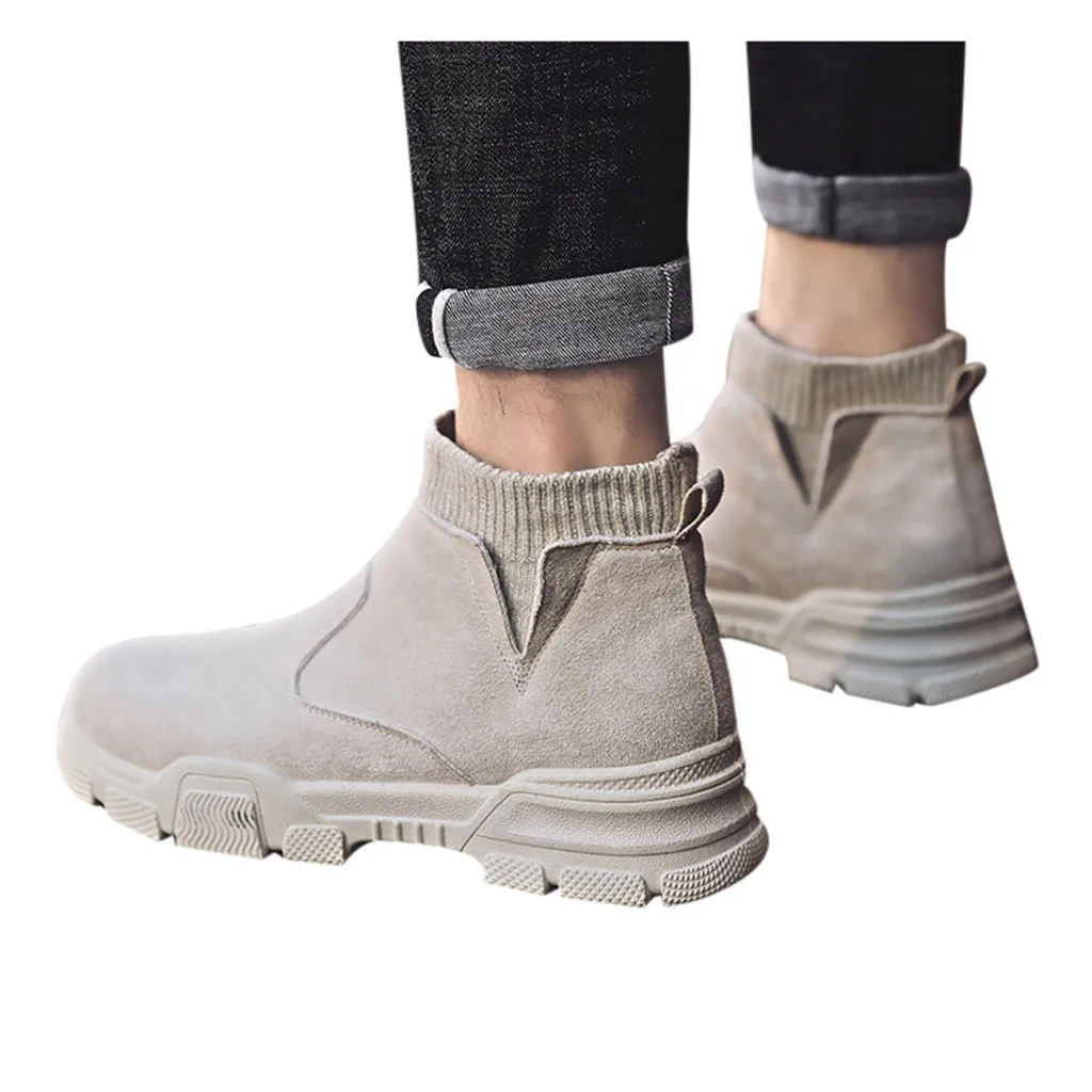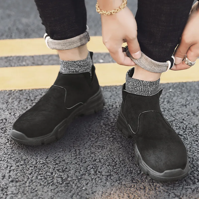 Мужские модные высокие замшевые носки в стиле ретро; Повседневные кожаные ботинки; Ботинки в байкерском стиле