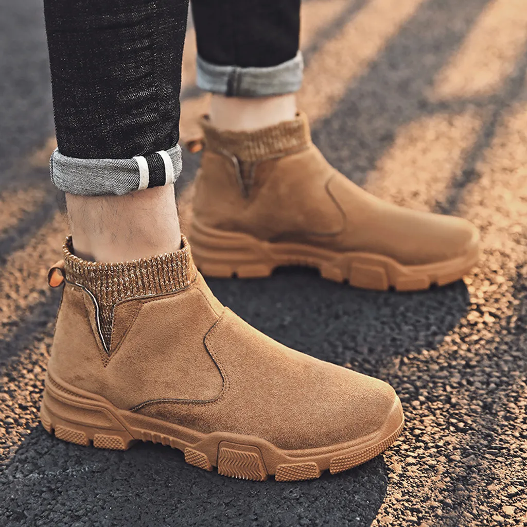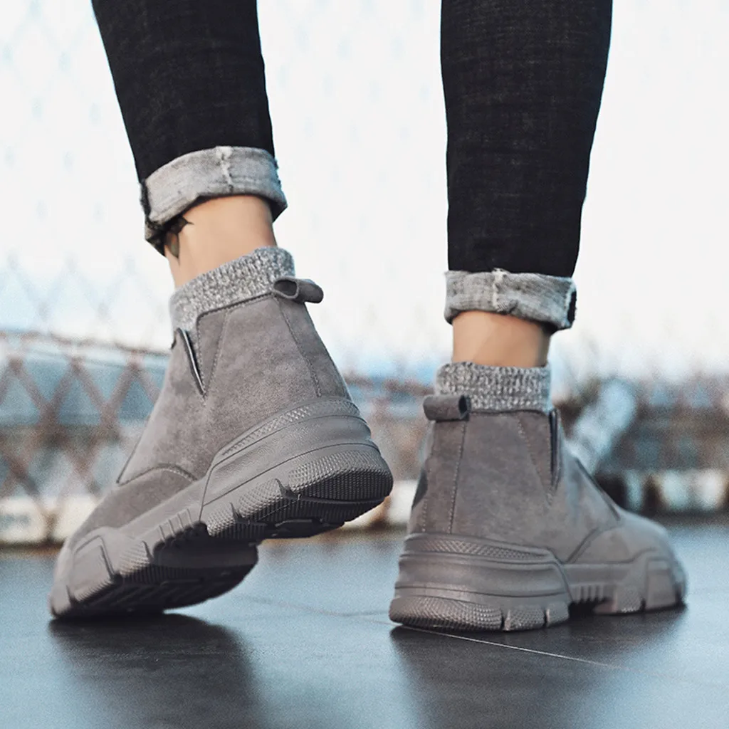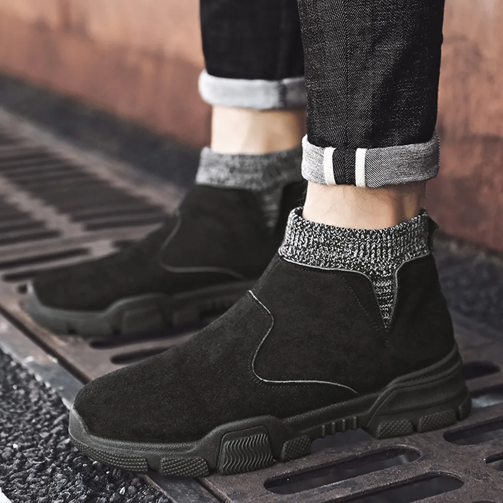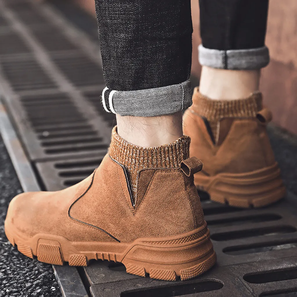 Мужские модные высокие замшевые носки в стиле ретро; Повседневные кожаные ботинки; Ботинки в байкерском стиле