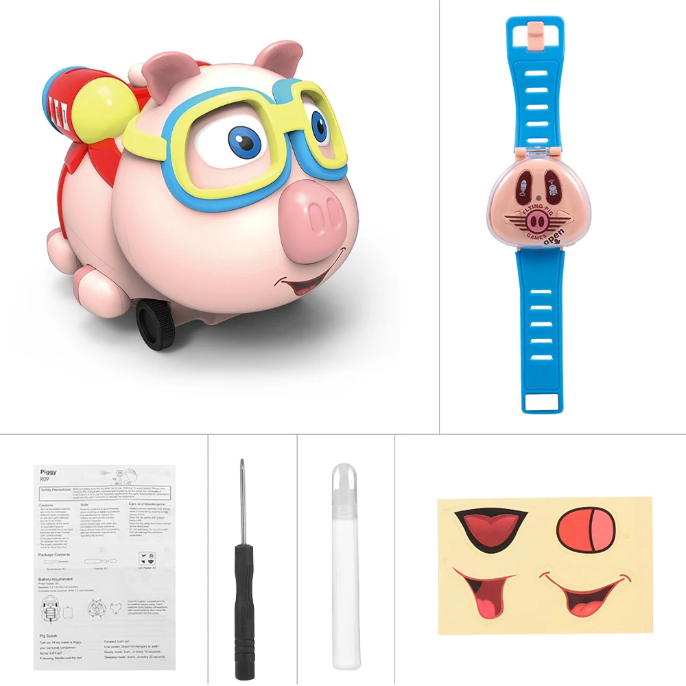 Эта игрушка-робот-копилка милая, с носимыми часами с пультом дистанционного управления, проста в использовании. Частота 2,4 ГГц, вы никогда не получите никаких помех во время игры. Эта игрушка-копилка может двигаться вперед, назад, поворачиваться влево и вправо. С одним пульверизатором, функция «follow me», очень интересно.
