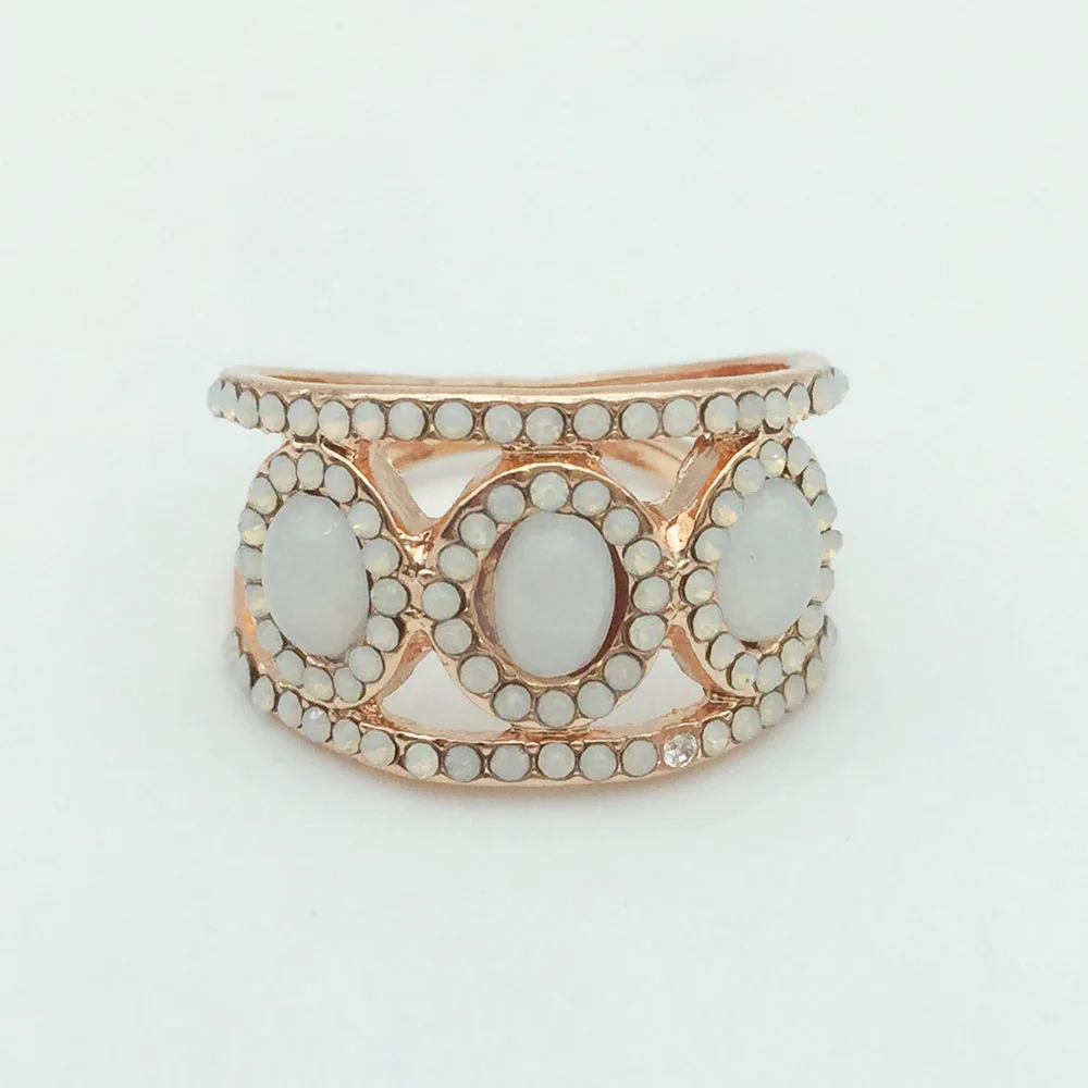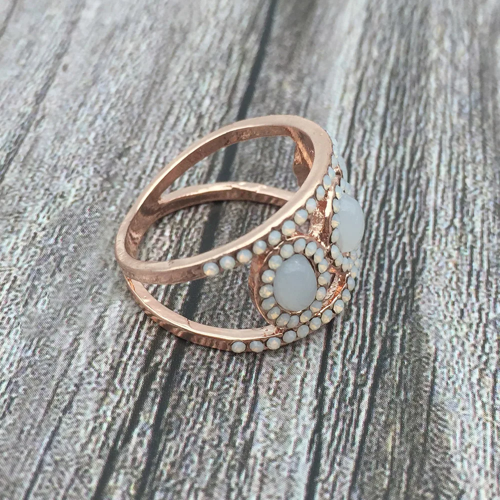 Модный новый дизайн, кольцо на палец с белым опалом и кристаллами, подарок, вечерние ювелирные изделия для женщин и девушек
