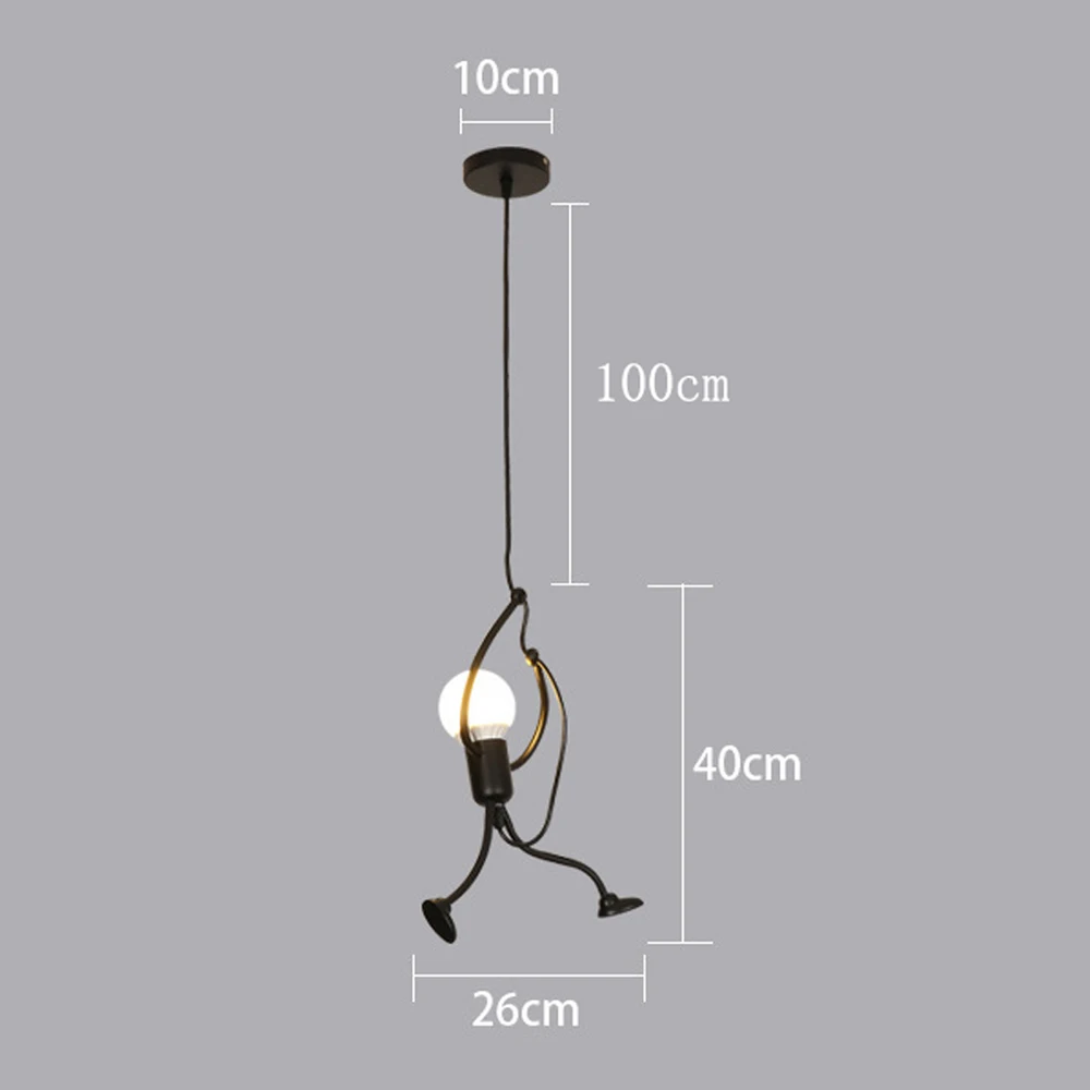 Название товара: Little man» и «Восхождение подвесной светильник Материал высокое качество железа Цвет: черная краска отделка Номинальное напряжение: 110-240 В переменного тока Мощность по уровню поверхности:<60 Вт Лампы: без остается неизменным, если используется колба с лампой для вас на выбор Подходит для: светодиодный лампы, эко-альтернатива галогенным лампам, энергосбережения остается неизменным, если используется колба Применение местах: гостиная/Спальня/отеля/зоны отдыха/клуба/бара/кафе