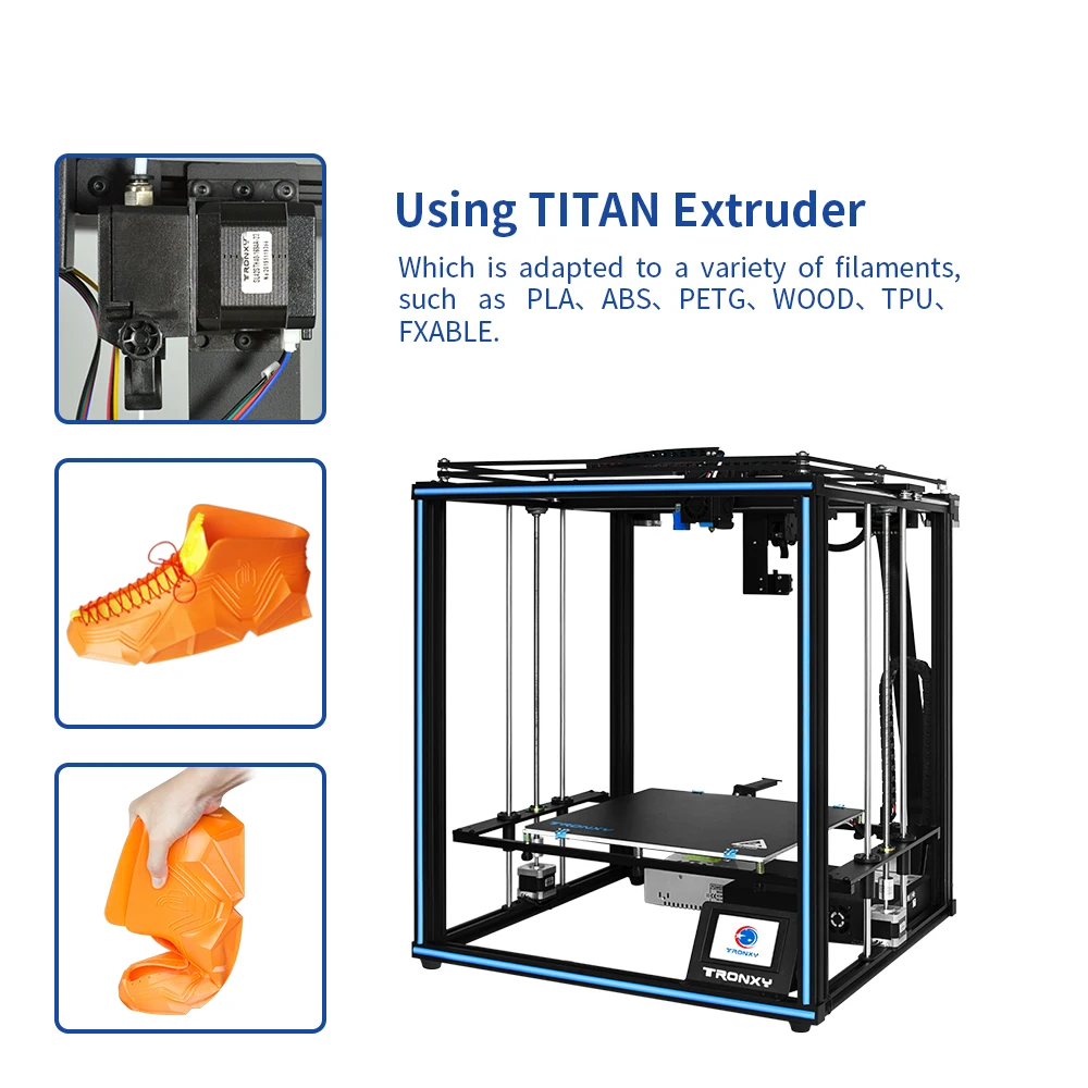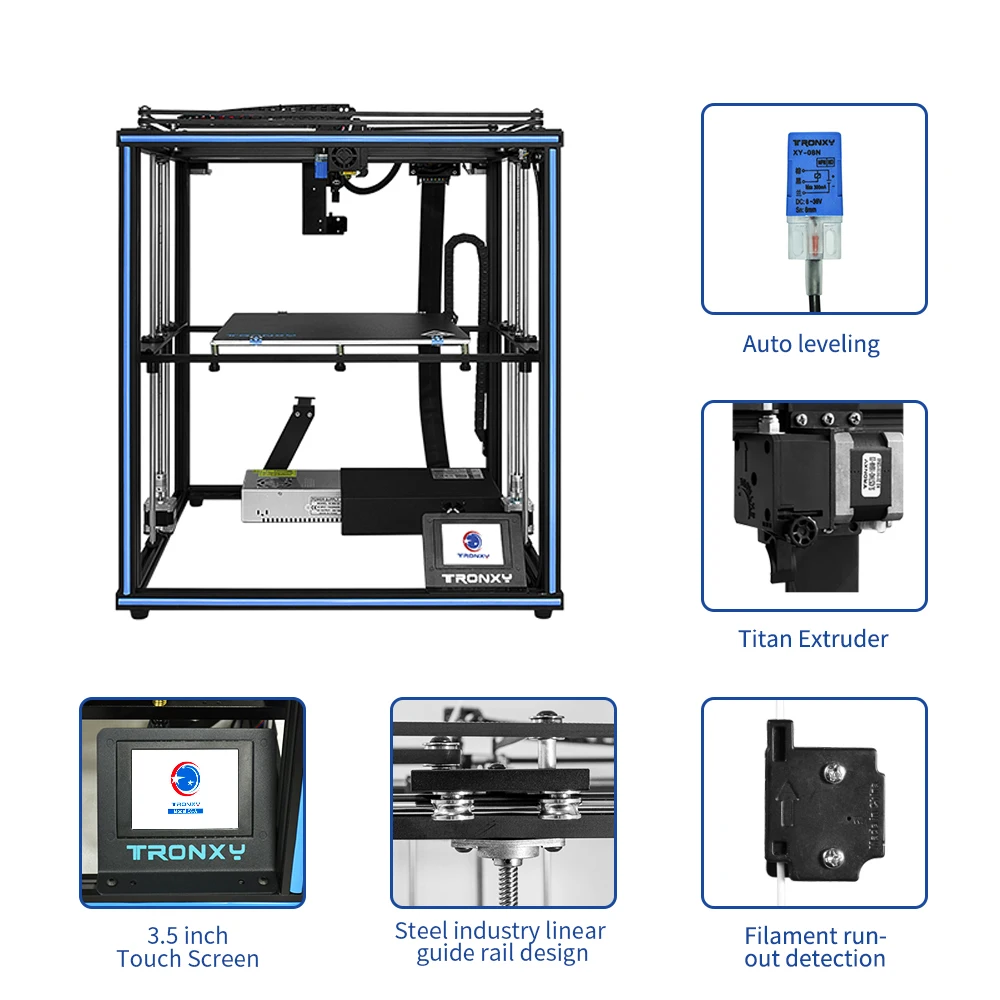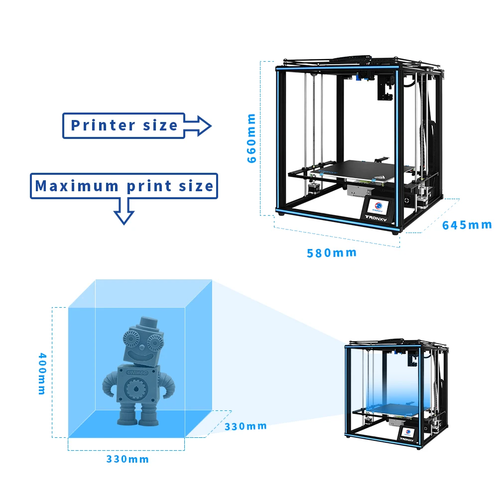 Tronxy X5SA PRO представляет собой настольный 3D принтер DIY с большим размером продукта 330*330*400 мм.