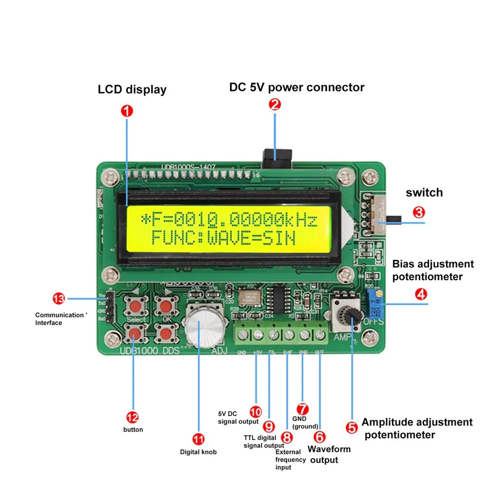 1. Одноканальный DDS генератор сигналов UDB1000S на основе прямого цифрового синтеза (DDS) Генератор сигналов.