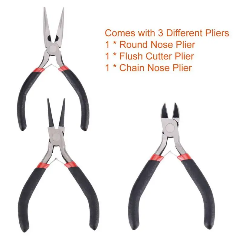 Превосходные плоскогубцы для бисероплетения-в комплекте есть 3 необходимые плоскогубцы для ювелирных изделий: плоскогубцы с круглым носом, плоскогубцы для резки проволоки и плоскогубцы с цепью. У каждого плоскогубца есть двухлистная пружина и Нескользящие ручки, которые делают их эффективными и безопасными для использования