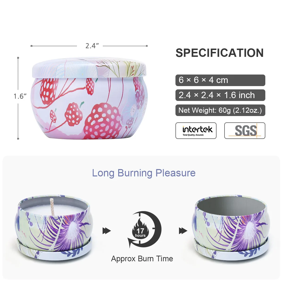 Долгий срок очистки горения:Каждый продукт горит около 17 часов, и весь набор продуктов горит до 68 часов.