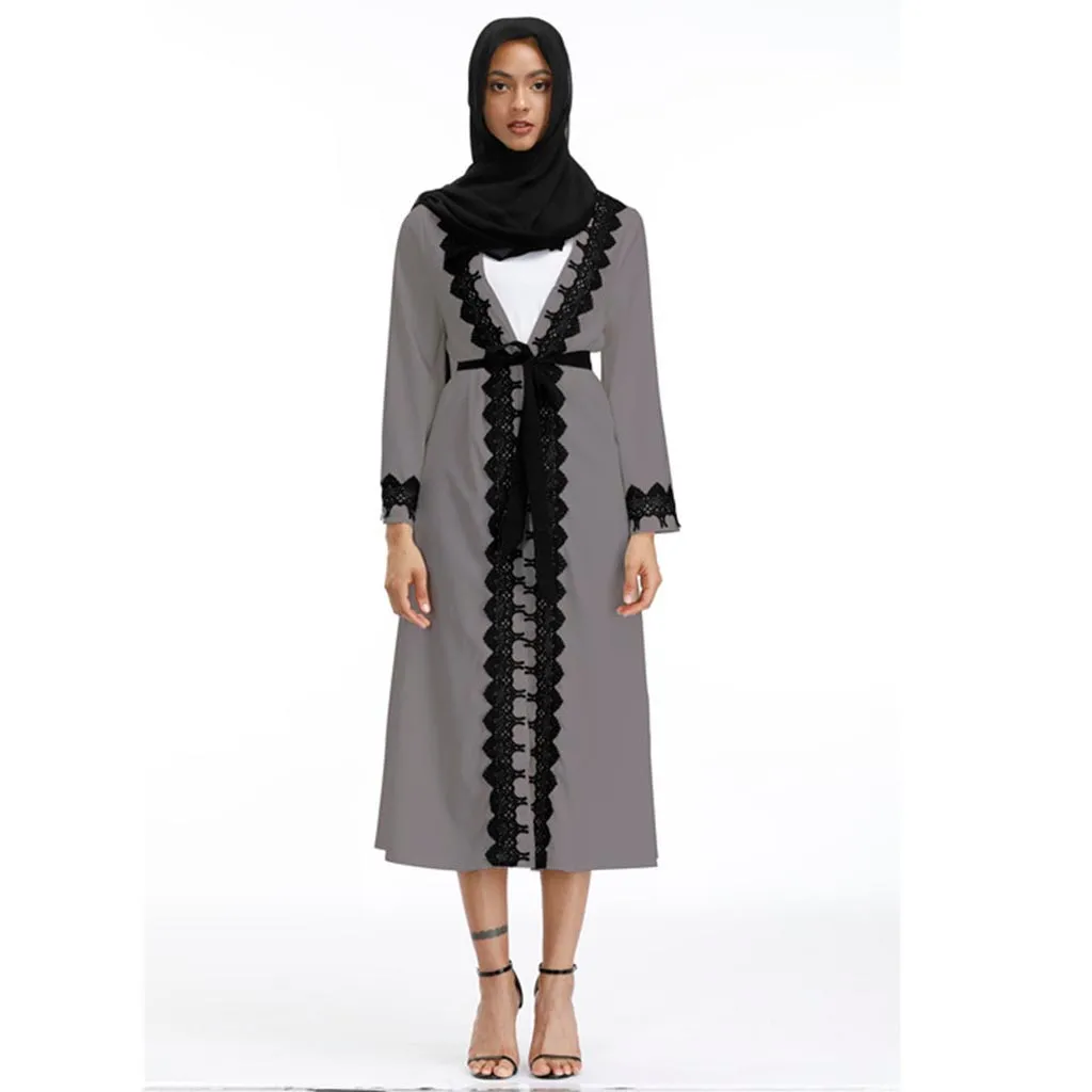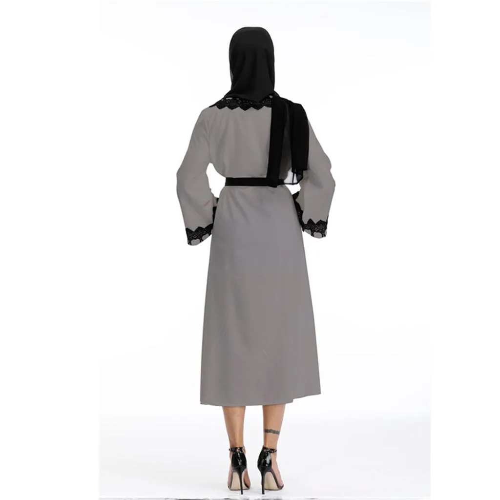 Женское мусульманское длинное платье с v-образным вырезом и длинными рукавами