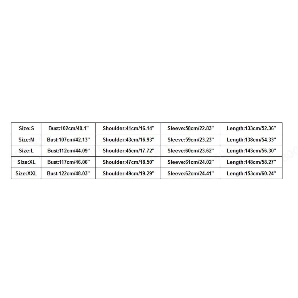 | Размеры: XXL | Бюст: 122 см/48,03'' | Плечо: 49 см/19,29'' | Рукав: 62 см/24,41'' | Длина: 153 см/60,24'' |