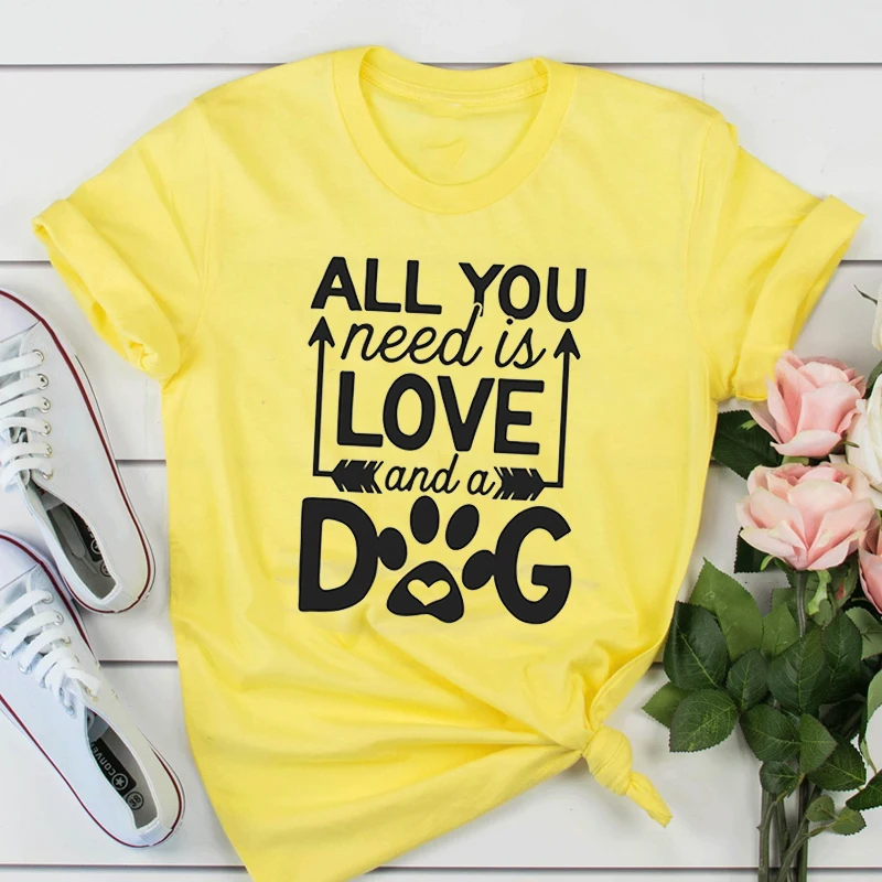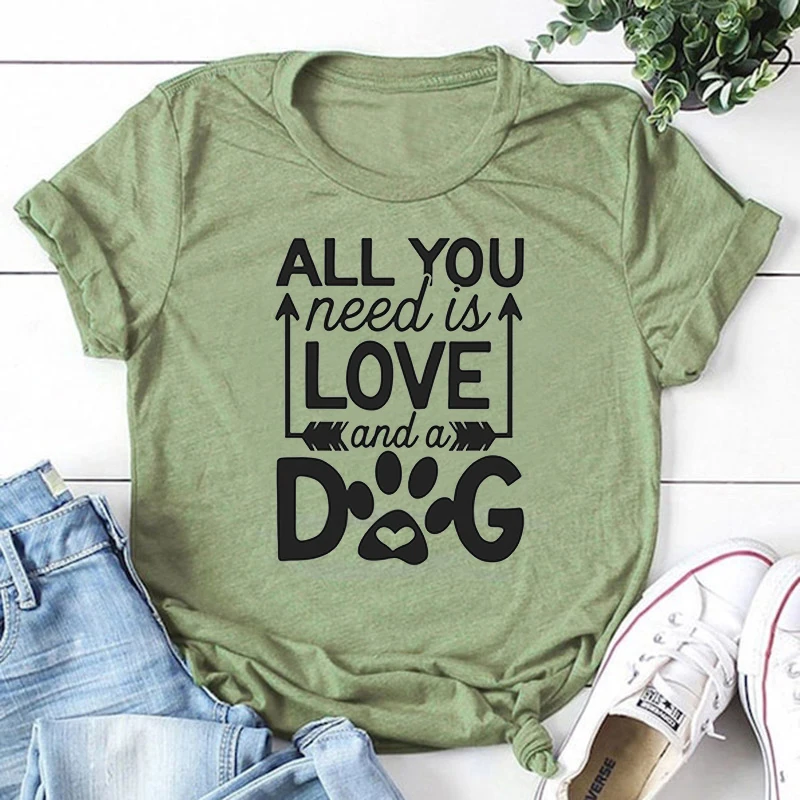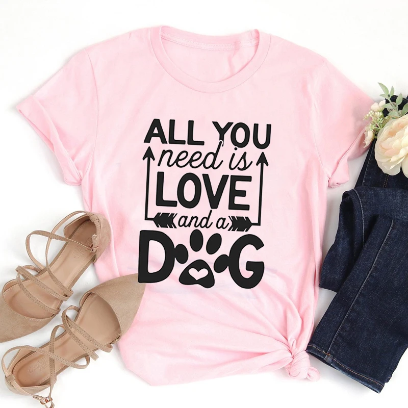 Все, что вам нужно, это любовь и собака, футболка для женщин, милые лапы, стрела, эстетическая футболка, хлопок, для девочек, Ulzzang, повседневные топы, лето, Прямая поставка