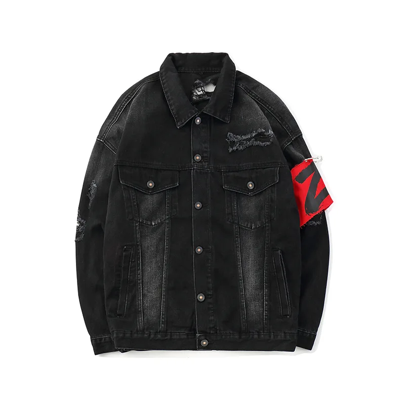 Мужская Повседневная джинсовая куртка, черная рваная джинсовая куртка с длинным рукавом, куртка в стиле хип-хоп, уличная одежда в стиле панк, рок-одежда