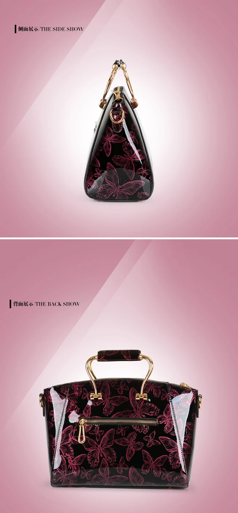 Женские кожаные сумки с принтом бабочки, роскошные женские сумки, дизайнерские сумки высокого качества из лакированной кожи, дамские сумки