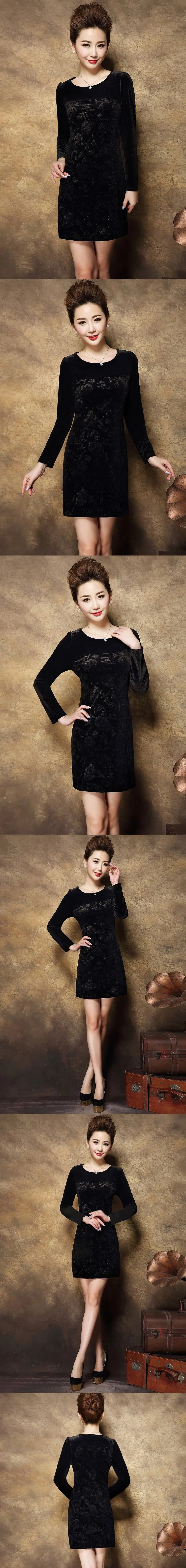 2020 Новое Осеннее бархатное платье больших размеров для женщин среднего возраста с длинными рукавами F1er, платья с принтом элегантное вечернее платье vestidos C45