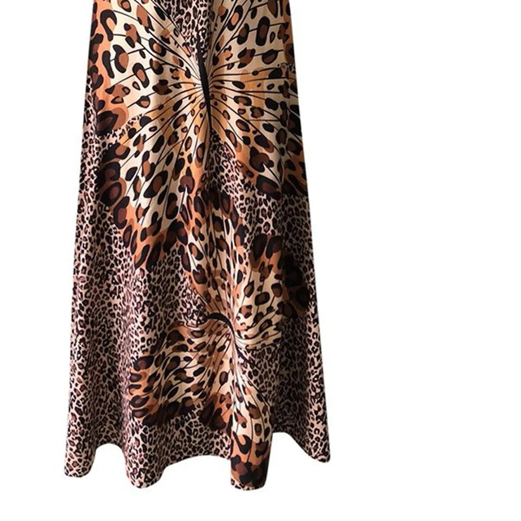 Женское длинное платье макси с глубоким v-образным вырезом и леопардовой бабочкой без рукавов для ночного клуба