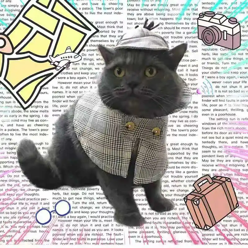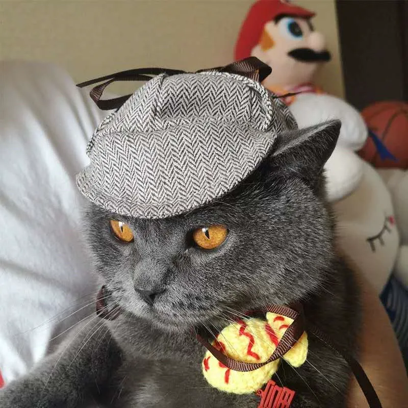 Шляпа детектива 10,5 см в диаметре, Детективный плащ (регулировка на липучке) Подходит для кошек и маленьких собак
