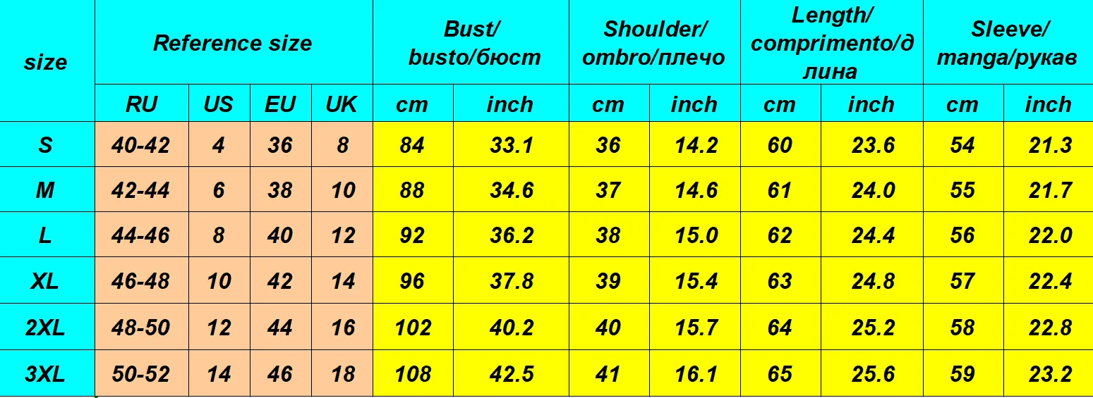 Таблица размеров:
