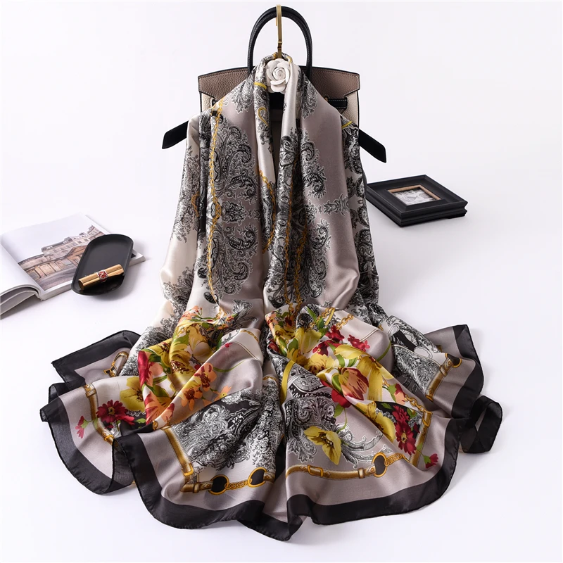Роскошный бренд POBING 100% саржевый Шелковый квадратный шарф Женская Косынка