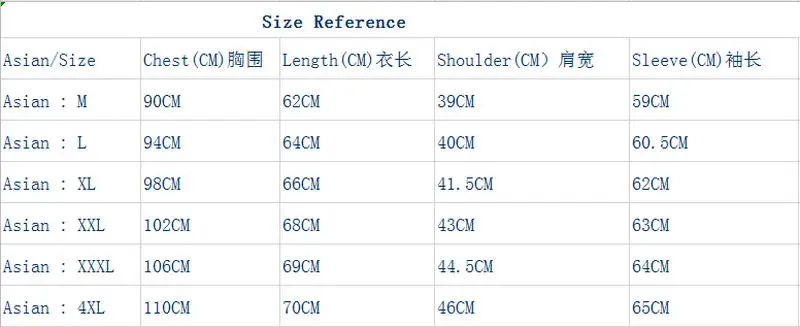 Таблица размеров