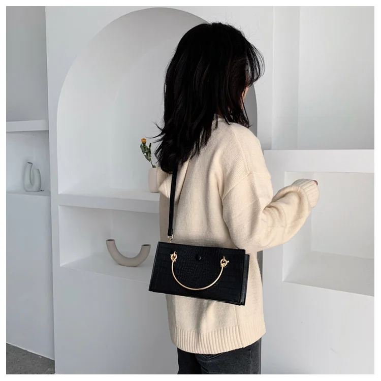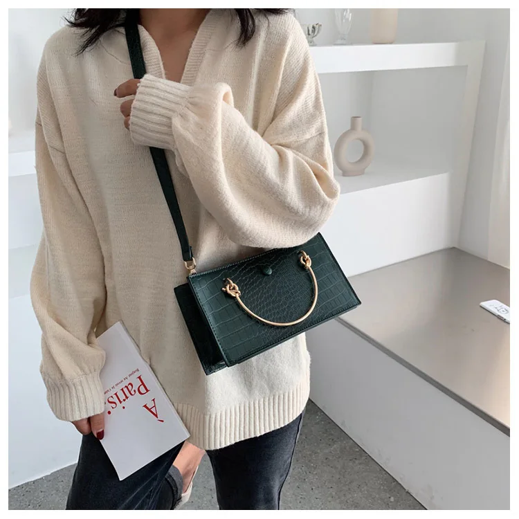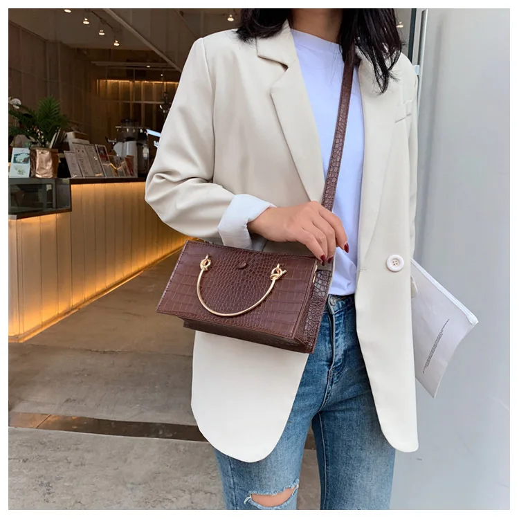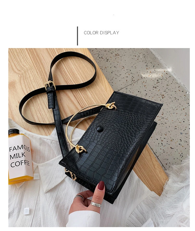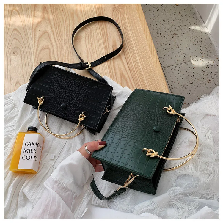 Название: женская сумка-тоут с металлическим кольцом, модная новая качественная кожаная женская сумка под крокодиловую кожу, женские сумки через плечо