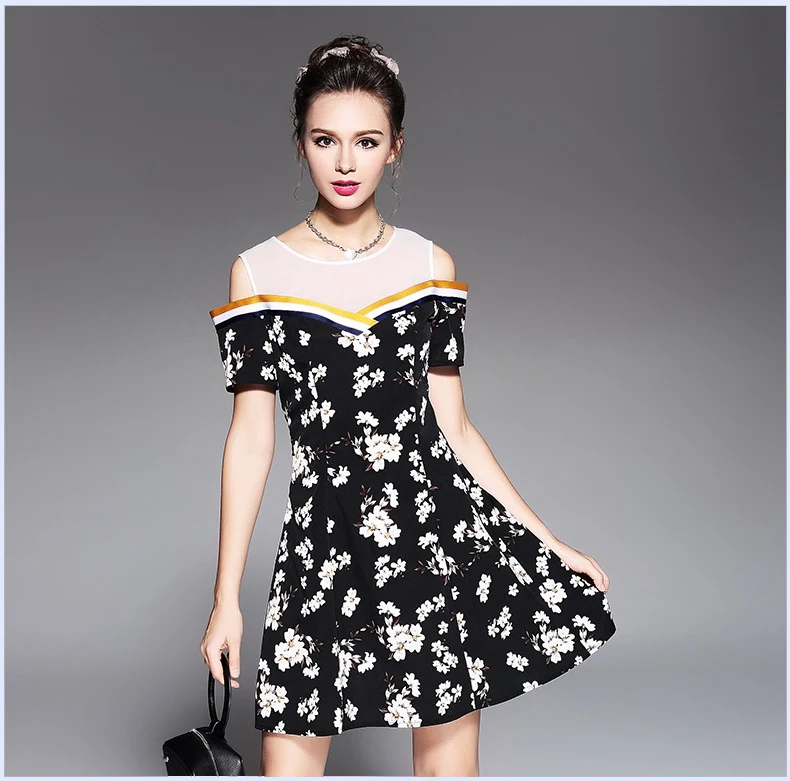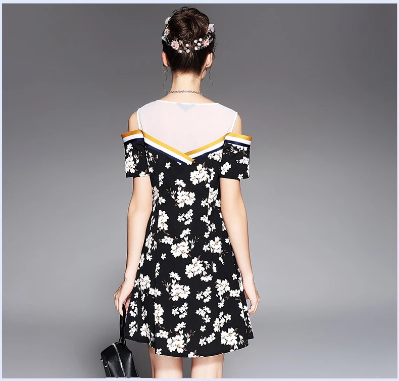 Платье трапециевидной формы с открытыми плечами и коротким рукавом