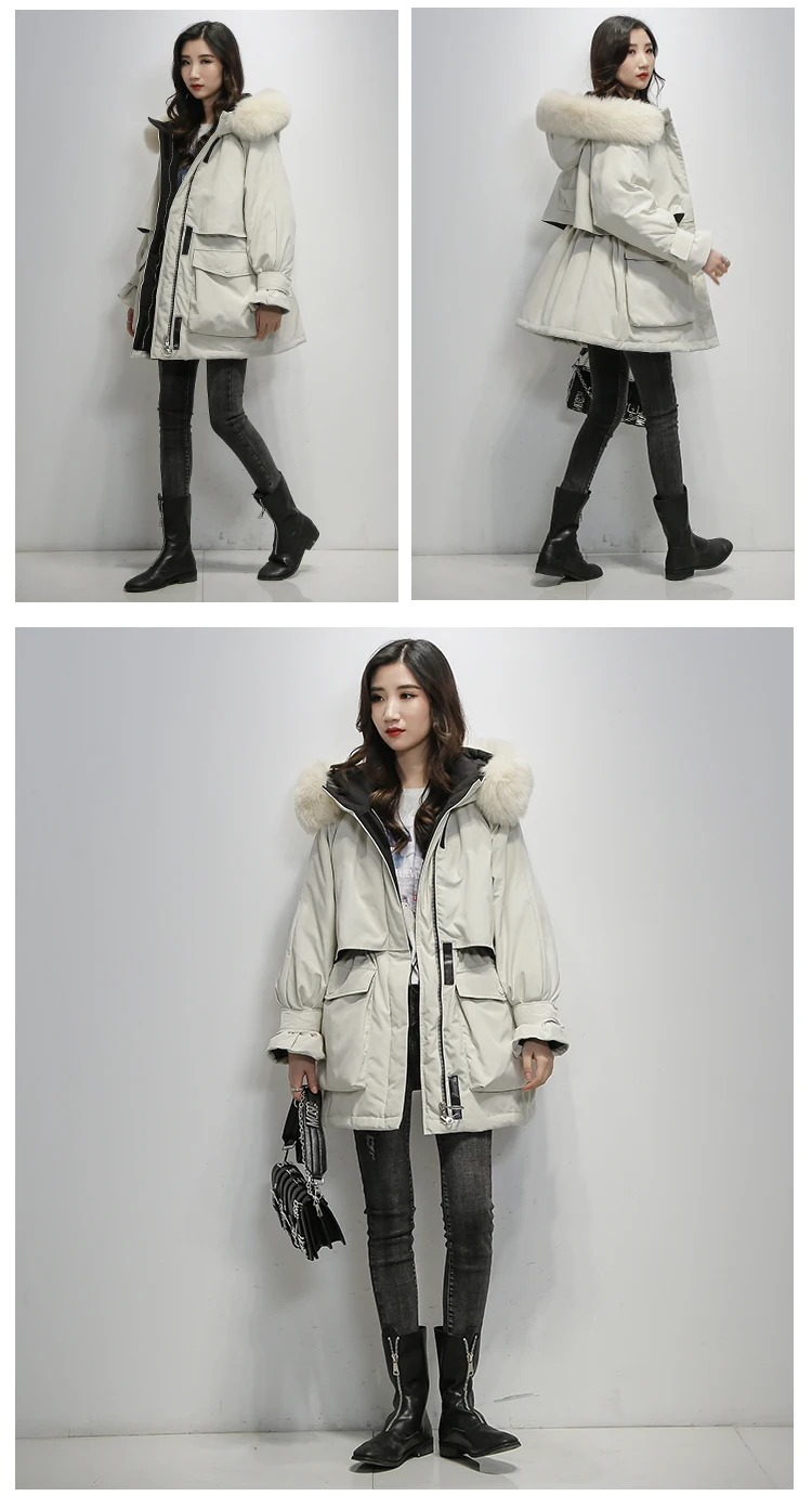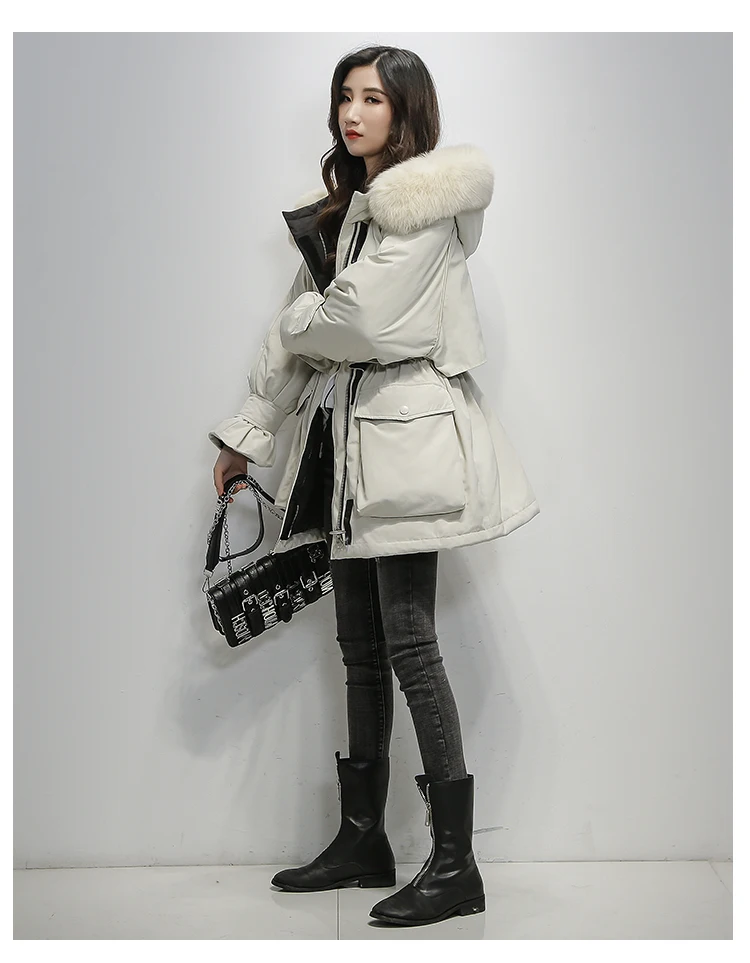 Куртка женская на белом утином пуху модный тонкий длинный Повседневный пуховик с