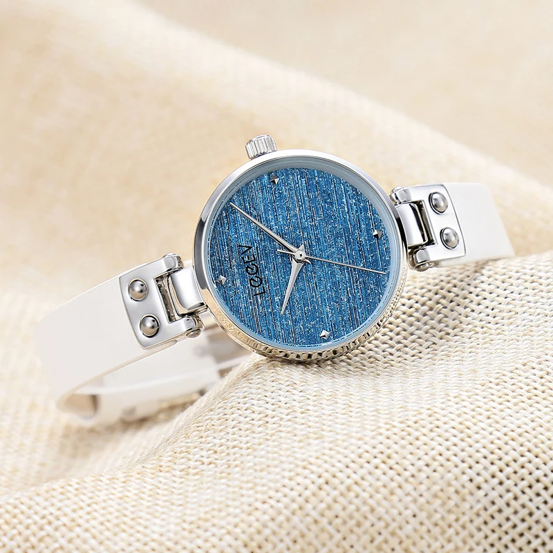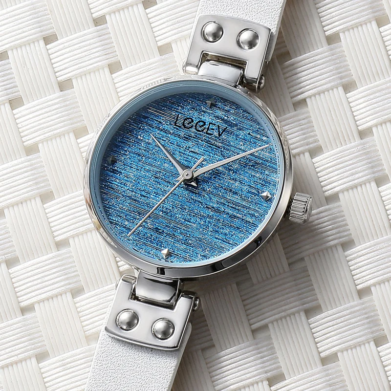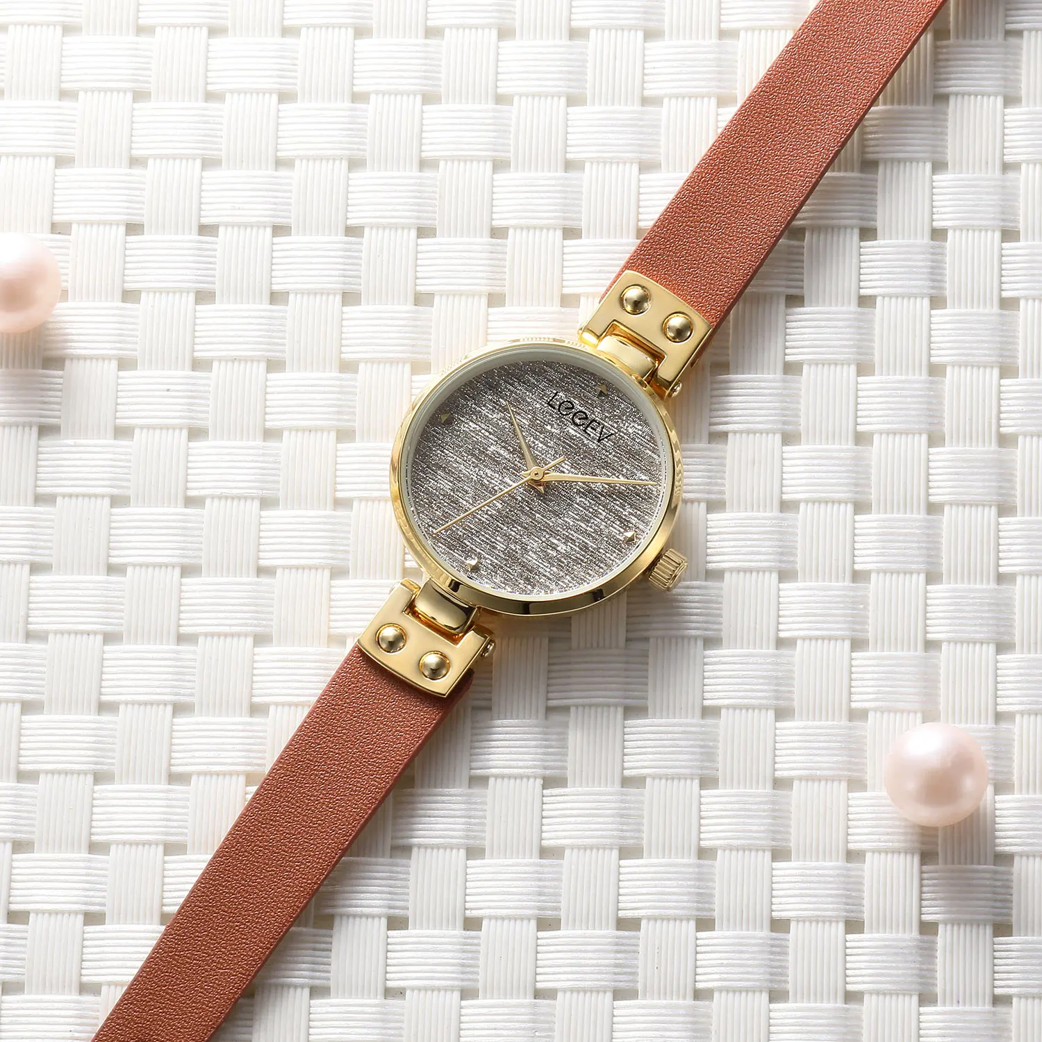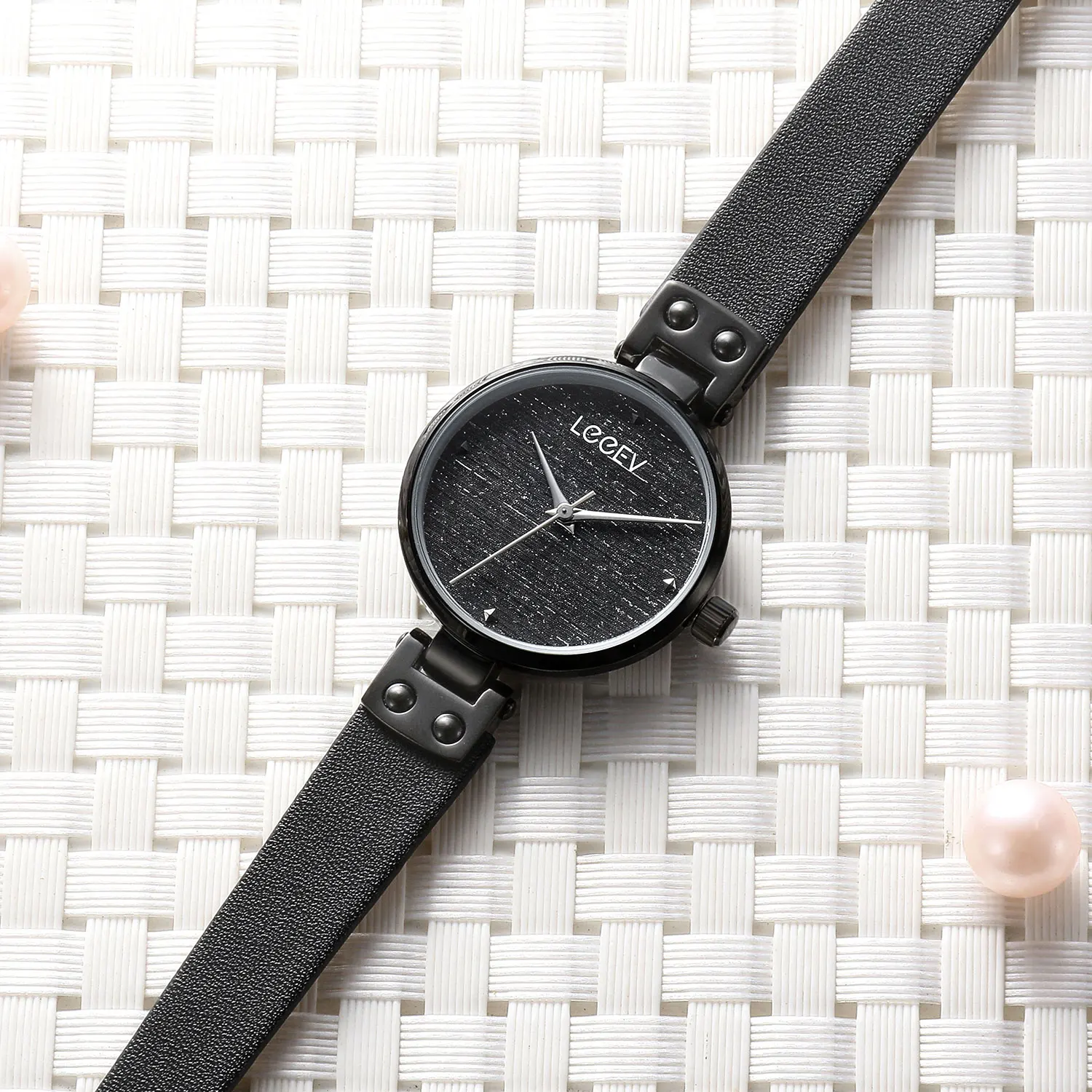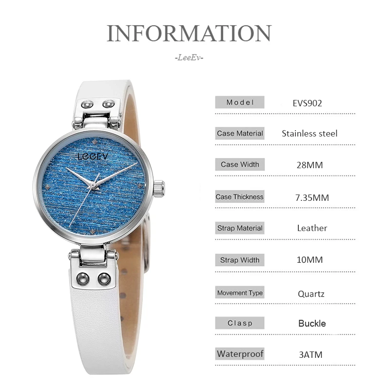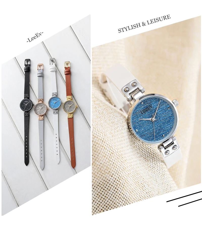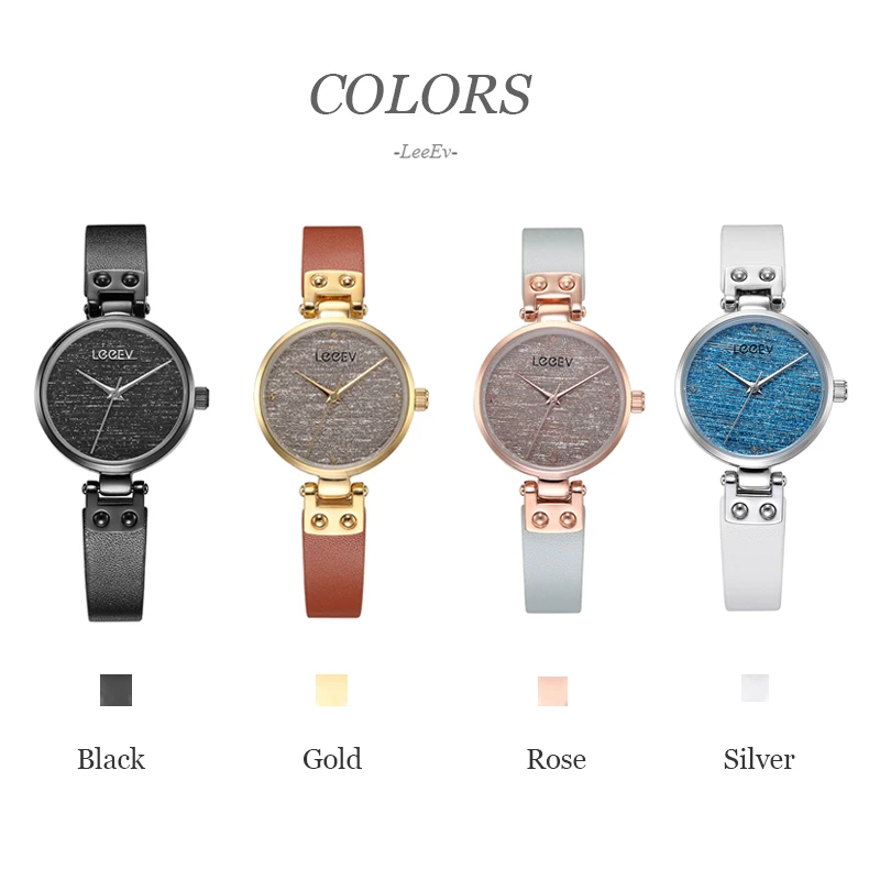 -Простые и изысканные кварцевые часы -Стильные и повседневные кварцевые часы для женщин. -Чехол из нержавеющей стали и кожаный ремешок -Закалённое, устойчивое к царапинам минеральное стекло