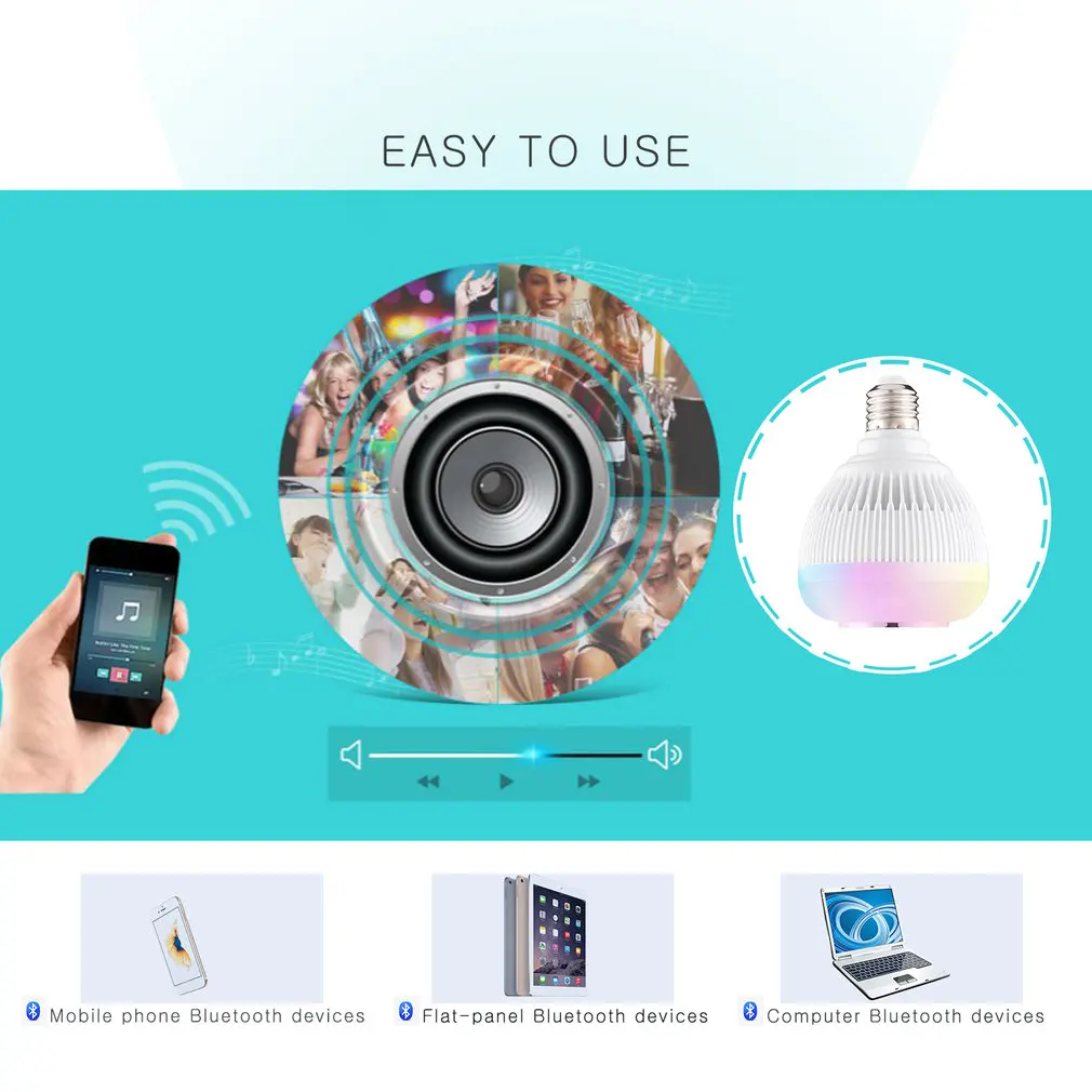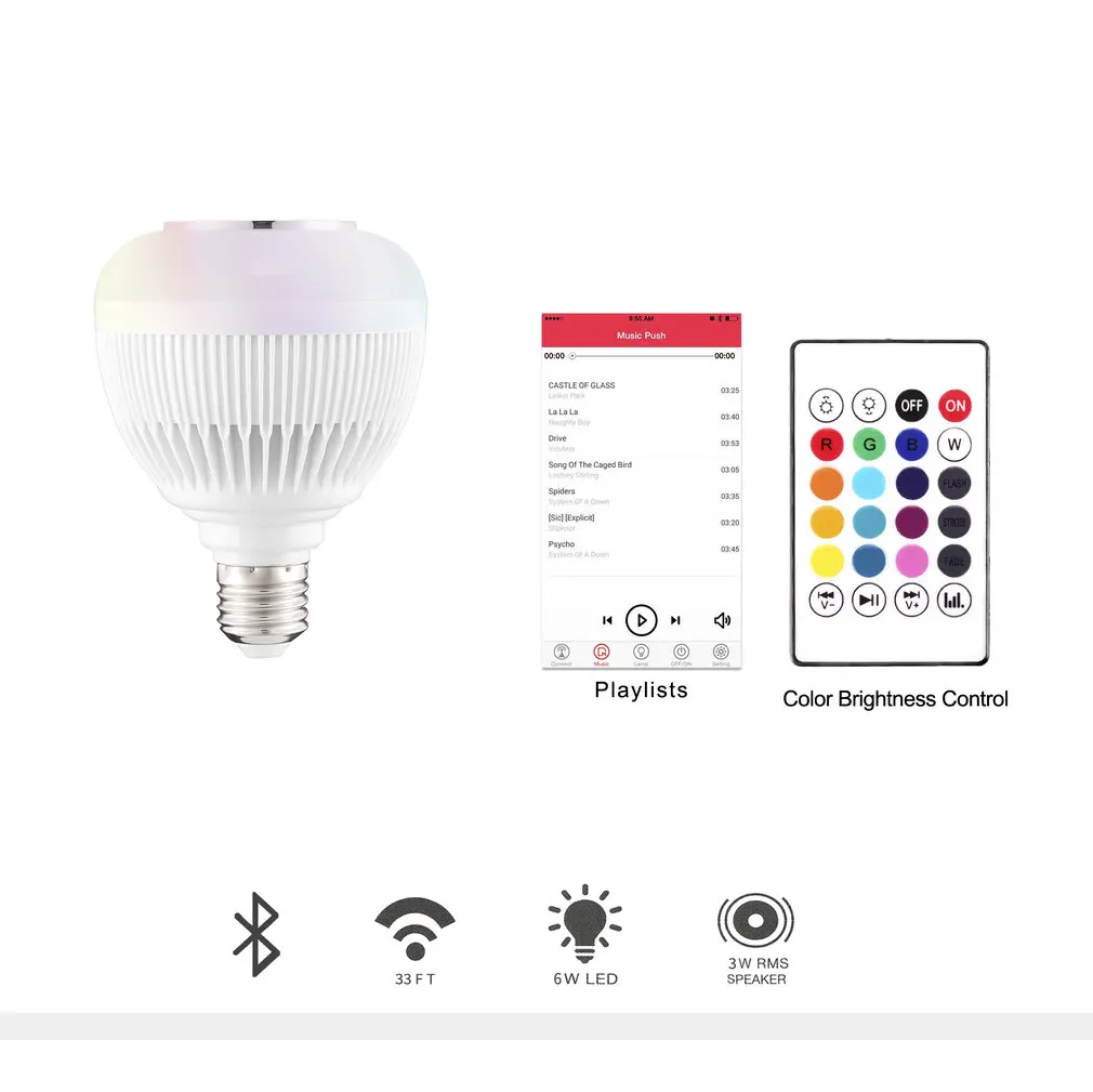 Энергосберегающая интеллектуальная беспроводная 12 Вт Мощность светодиодный Bluetooth динамик лампа Аудио свет лампа воспроизведение музыки с ИК-пультом дистанционного управления