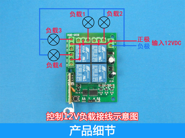 Размер платы приемника: 75*55*20 мм Информация о продукте: Плата приемника дистанционного управления компании подходит для электрических схем управления, таких как Противоугонная сигнализация, электрическая дверь и окно дистанционного управления, контроль сигнала, промышленное управление, подъемное оборудование. Все релейные контакты модуля дистанционного управления являются независимыми выходами, которые очень подходят для прямого контроля различных нагрузок; Продукт использует радиочастотную беспроводную технологию, нет направленности, И переключатели не мешают друг другу. 12V переключатель дистанционного управления, блок питания рекомендуется использовать более 500mA Регулируемый источник питания постоянного тока питания, приемный модуль использует сверхгетеродинный модуль, предотвращающий помехи, и чувствительность приема намного выше, чем обычный модуль супер-регенерации. Покупатели могут сравнить и приобрести. Плата приемника может выдерживать 10А на канал и может непосредственно управлять нагрузками переменного тока. Каждое реле имеет набор нормально открытых (нормально замкнутых) контактов. Чтобы продлить срок службы приемной платы, мы не рекомендуем управлять нагрузкой высокой мощности. Рекомендуется, чтобы мощность управления каждого канала была 60 Вт (резистивная нагрузка); 50 Вт (Индуктивная нагрузка); 40 Вт (нагрузка двигателя). Основные параметры: Модель продукта: KGS-B50-4 Рабочее напряжение: DC12V Рабочая частота: 315 МГц Контактная мощность: ≤ 10А/250В переменного тока; 10А/30В постоянного тока Чувствительность приема: >-114дб Дистанция дистанционного управления: 4000 метров (без помех в открытом пространстве) это расстояние является теоретическим расстоянием без помех, и оно будет уменьшено в зависимости от различных экологических помех и перегородок во время использования. Обычно это примерно 10%-50% от номинального расстояния. Количество каналов управления: 4 нормально открытых (нормально закрытых) контактов Тип кодирования: тип обучения Метод обучения: Нажмите кнопку обучения один раз, индикатор горит. В это время нажмите кнопку на пульте дистанционного управления, индикатор погаснет, и обучение успешно. Метод очистки: Нажмите и удерживайте кнопку обучения в течение 8 секунд, индикатор загорается, затем выключается, и очистка прошла успешно. Режим работы: (блокировка/пробежка/самоблокировка, пользователь может выбрать на печатной плате, заводская настройка самоблокировка) Блокировка, (вручную нажимая каждую кнопку дистанционного управления, соответствующее реле включено, а затем нажмите другую кнопку дистанционного управления; Соответствующее реле включено, другой выключен, и только одно реле может быть включено одновременно) Пробежка (вручную нажав на каждую кнопку дистанционного управления, соответствующее реле включено, отпустите кнопку дистанционного управления; Соответствующее реле отключено, можно включить только одно реле одновременно) Самоблокирующийся, (тот же ключ контролирует весь путь, нажмите один раз, чтобы открыть, нажмите еще раз, чтобы закрыть, 4 независимых управления)