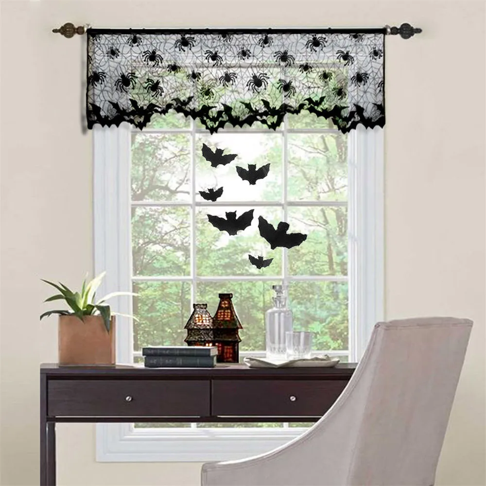 Современные черные сексуальные кружева Хэллоуин спайдервеб-лампы тенты Топпер шторы двери Swag дом с привидениями праздничные вечерние поставки