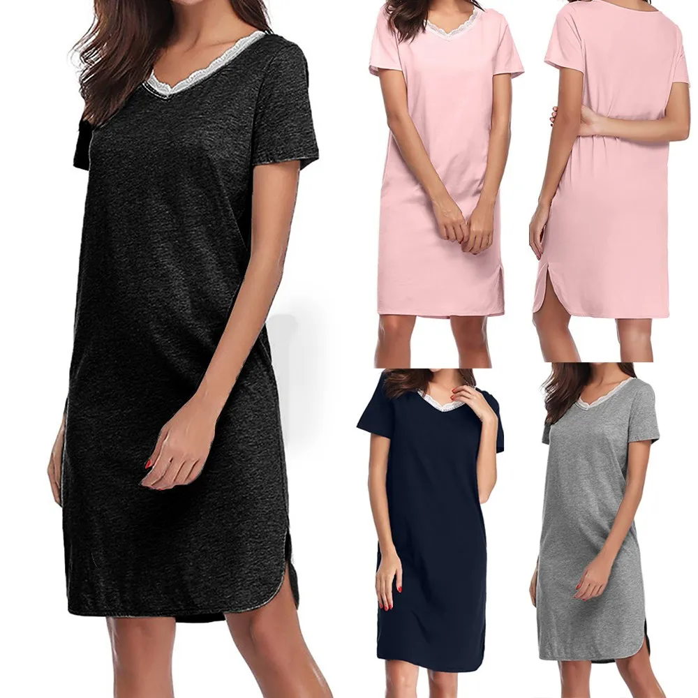 Женская хлопковая ночная рубашка с коротким рукавом, мягкая однотонная длинная ночная рубашка, 40 *, хит продаж, 2019