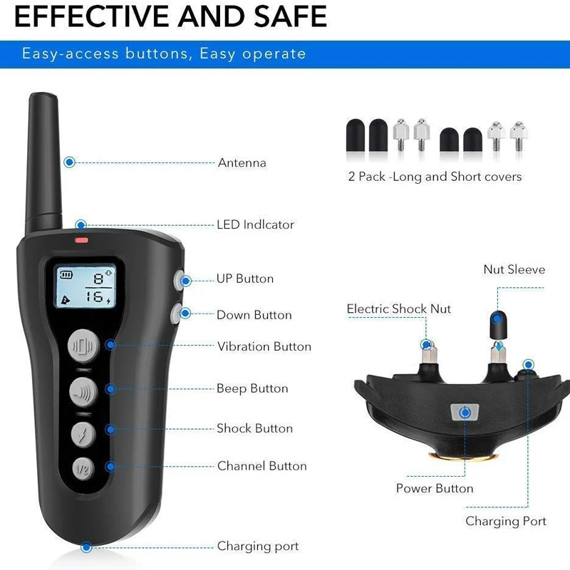 Тренировочный ошейник для собак, водонепроницаемый ошейник с дистанционным управлением на 1000 футов, электрошоковый ошейник с звуком и вибрацией, ЖК-дисплей, продукт для домашних животных