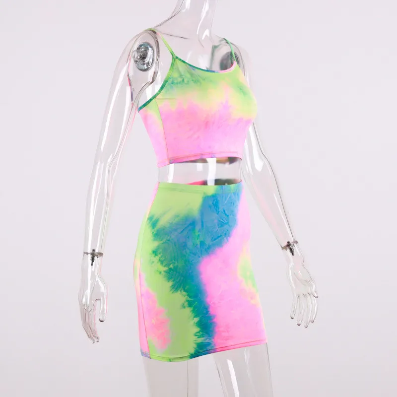 Sexy Women 2PCS Sleeveless Strap Bralette Tank Crop Tops Bodycon Colorful High Waist Pencil Skirt Set Party Holiday Mini Dresses