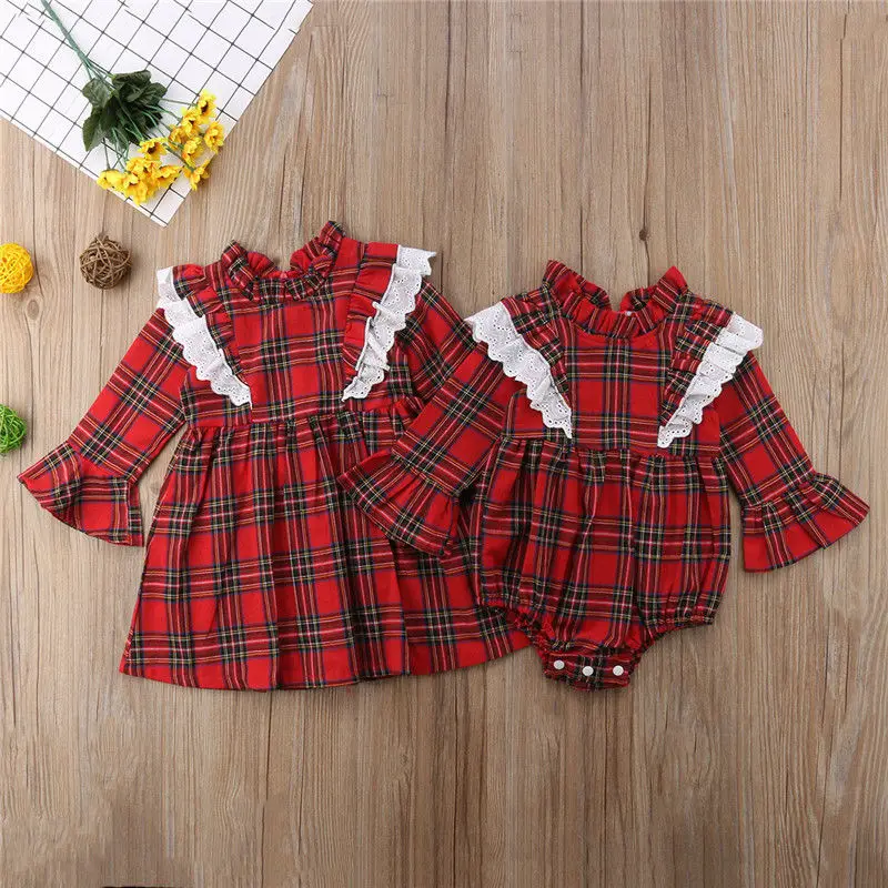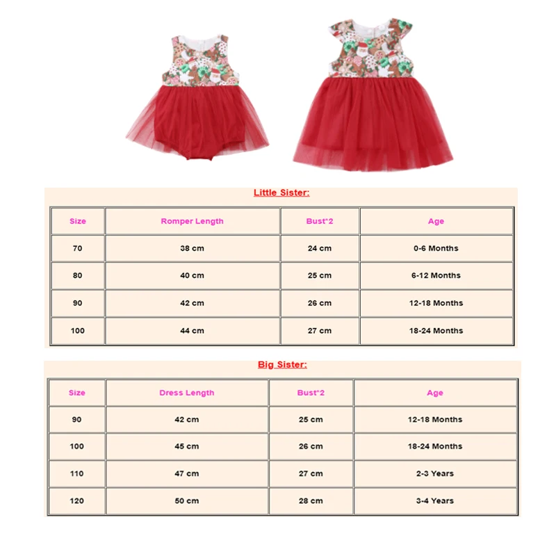 Christmas Family Big Sisters Little Sister Matching Clothes !! High quality and Brand new 100% Main Color: AS The Picture New in Fashion Material: Cotton BlendAttention plz: If your kid is chubby, we recomend choosing a larger size, thanks. Please kindly refer to your kids actual height and the size chart before buying/bidding. Thanks. Package included: 1x Romper or 1x Dress Size Chart: