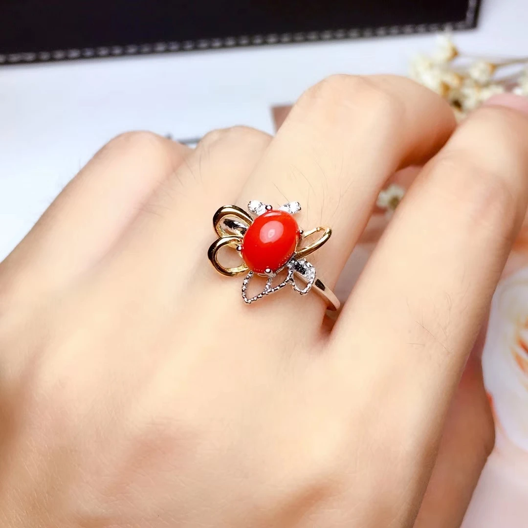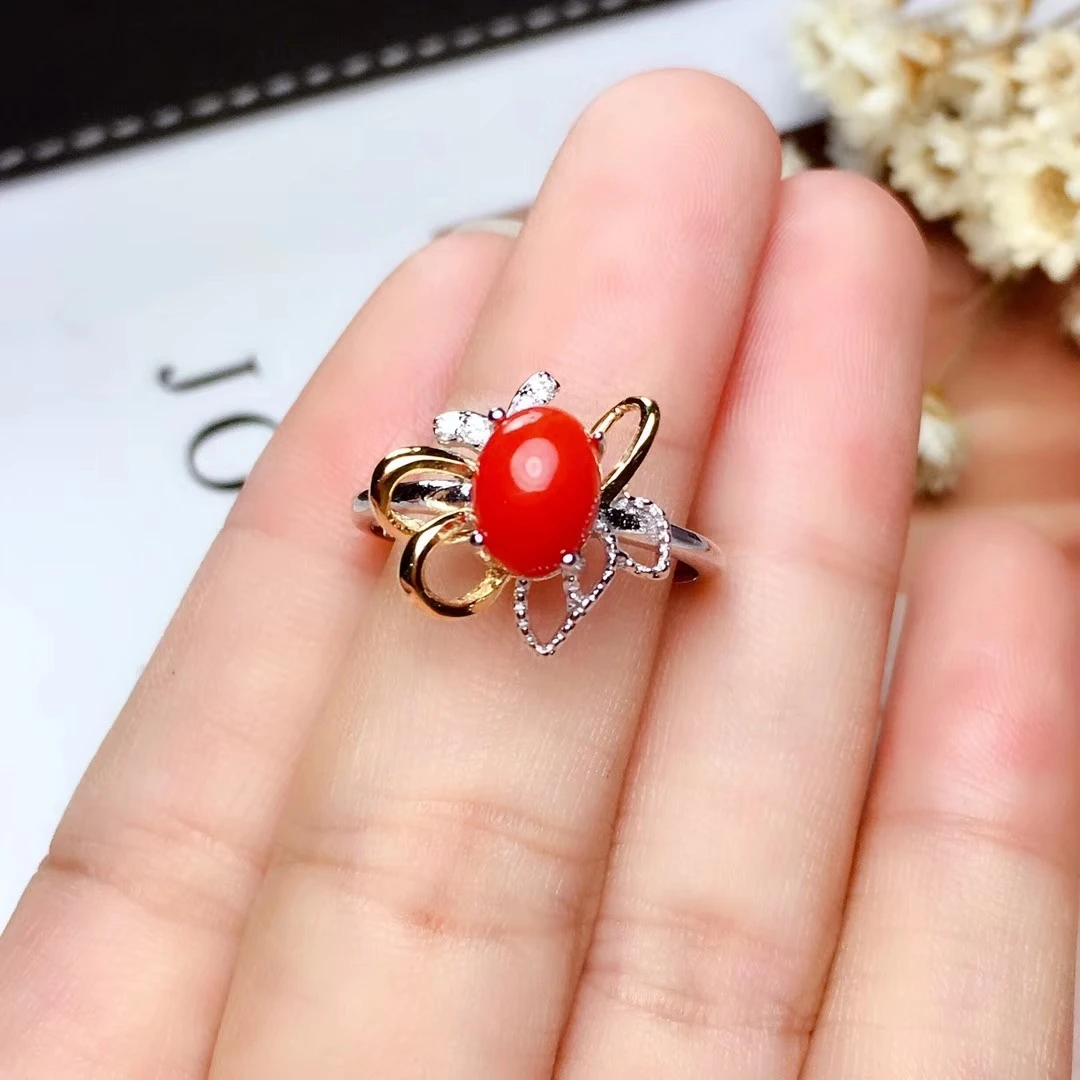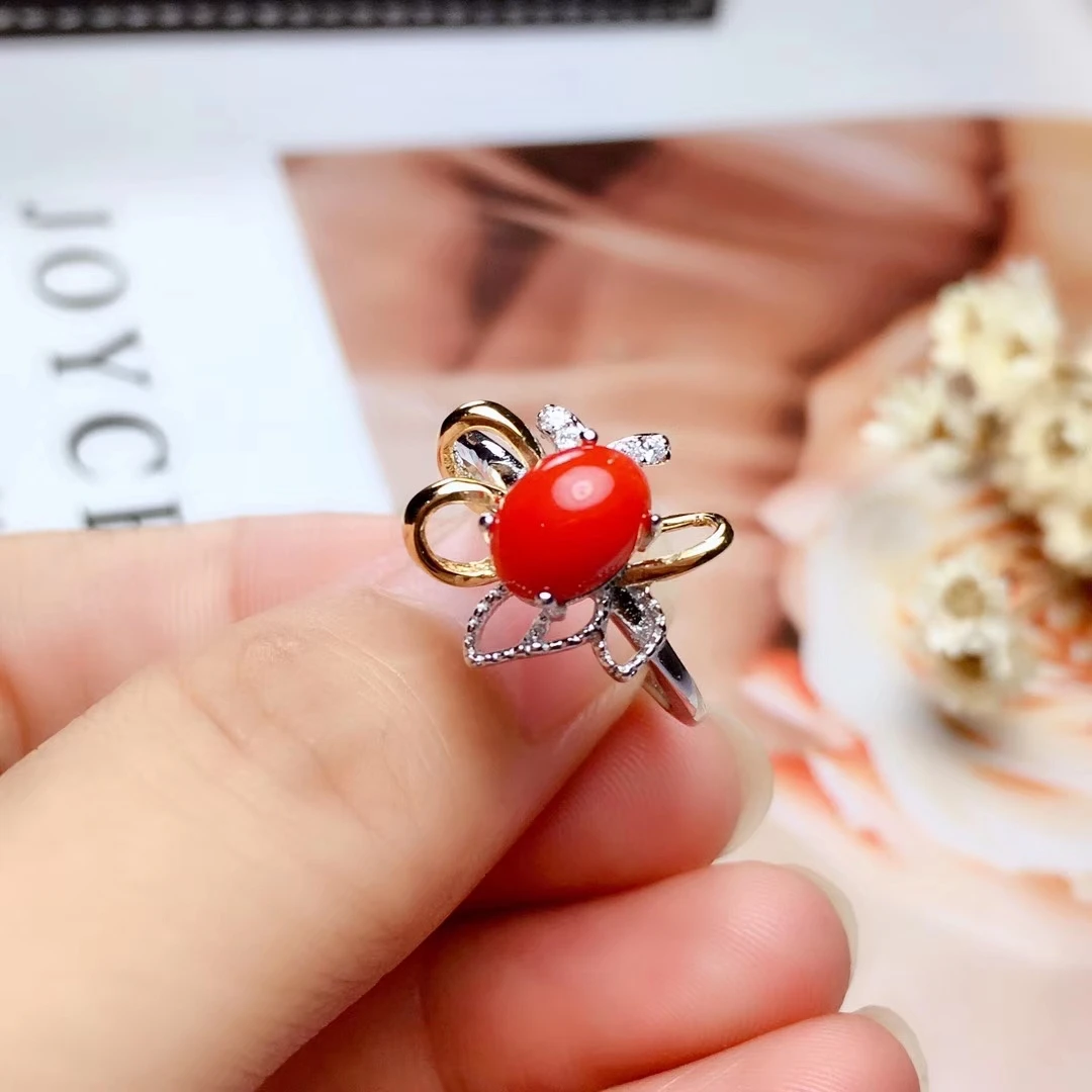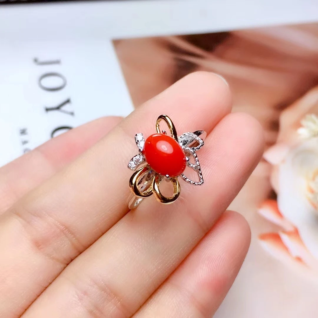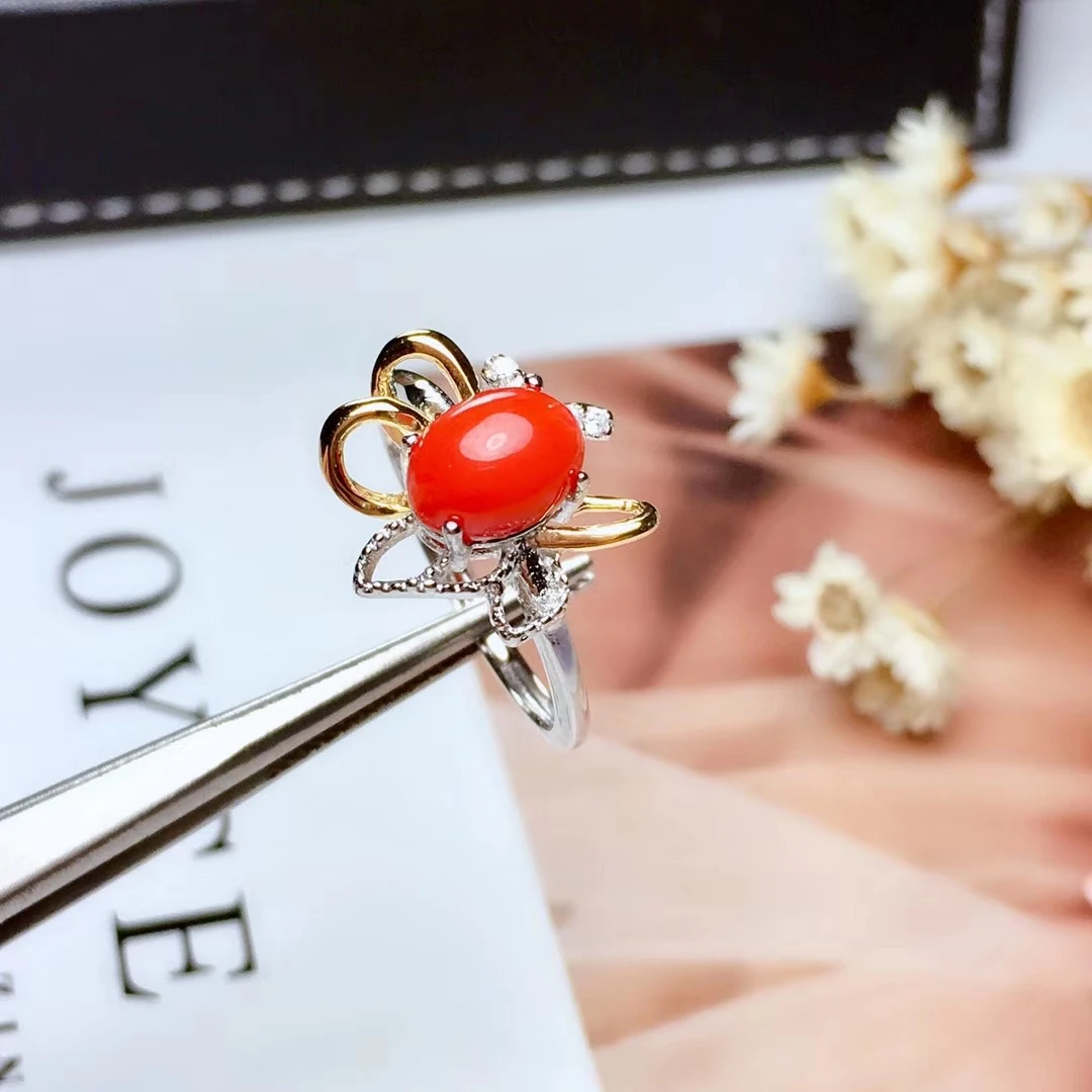 Основной драгоценный камень: Натуральный Коралл, Размер камня около: 6*8 мм, Тип металла: 925 пробы Серебряный, Боковой камень: циркон.