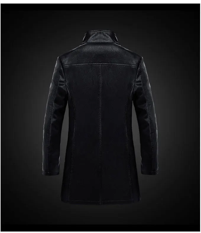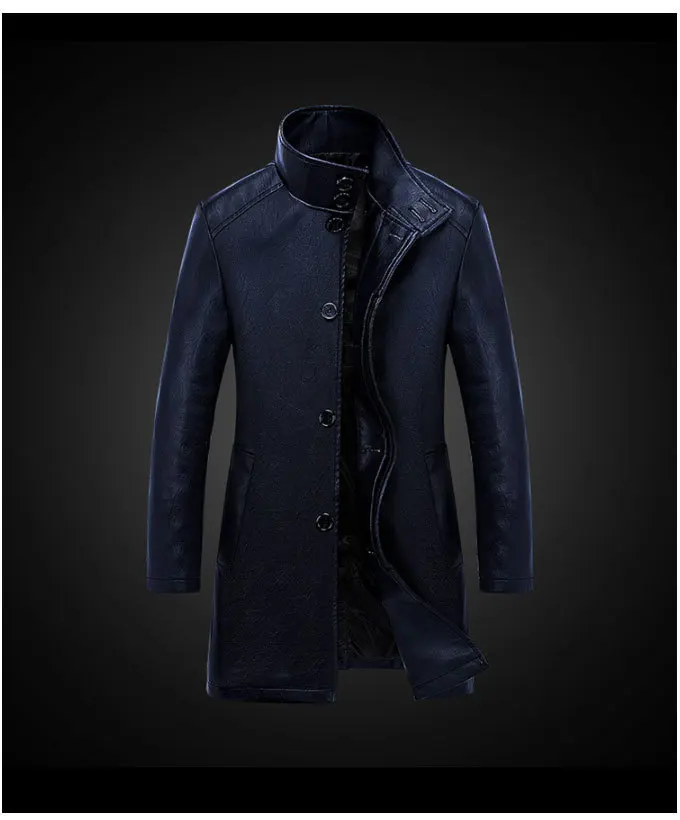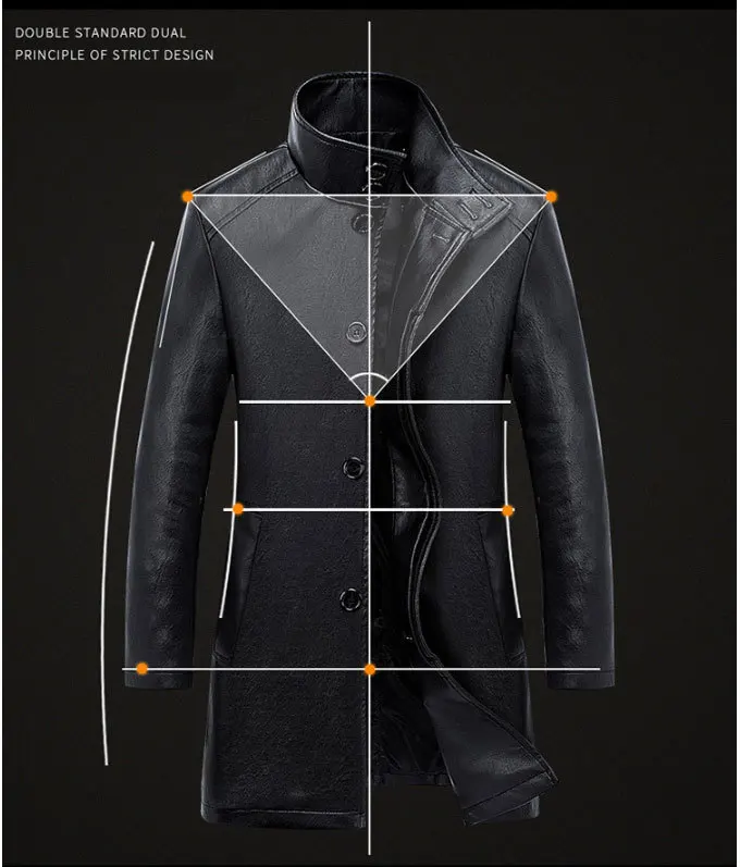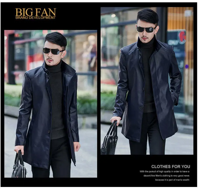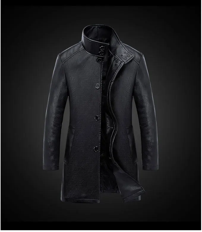 Мужской кожаный Тренч с меховым воротником зимний большого размера длинным