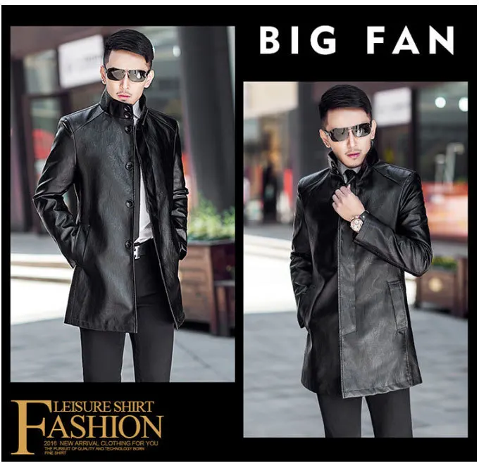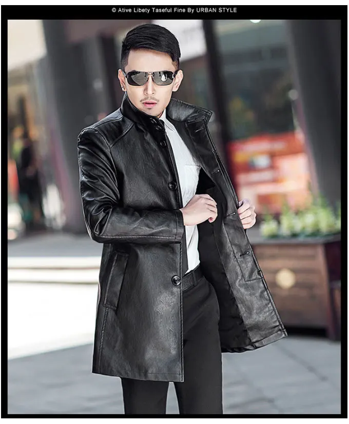 Мужская Длинная кожаная куртка из искусственной кожи, ветровка из искусственной кожи в британском стиле на осень, 2019