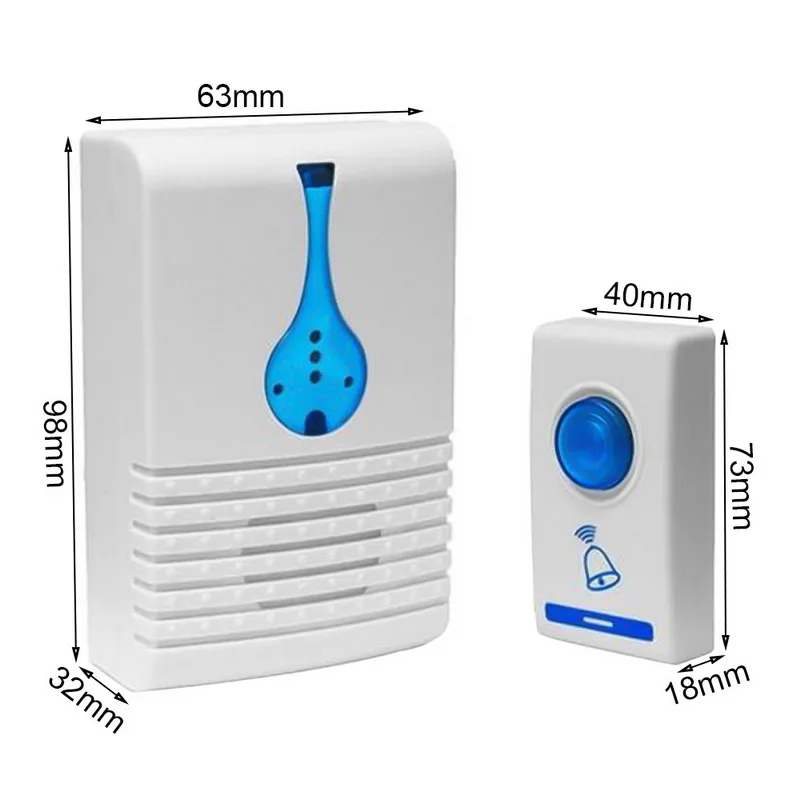Посылка: 1/2 * дверной звонок приемник, 1 * дверной звонок передатчик