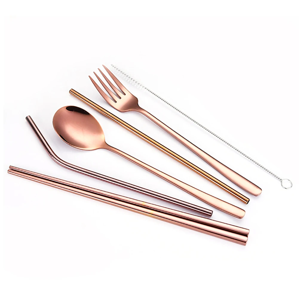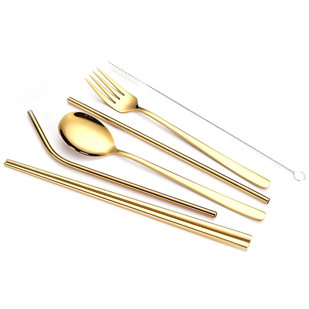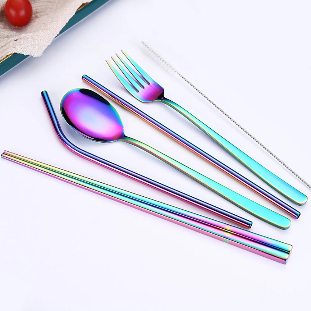 6 шт./компл. корейский стиль Портативный Нержавеющая сталь палочки из нержавеющей стали вилка соломинки набор столовой посуды для кухни