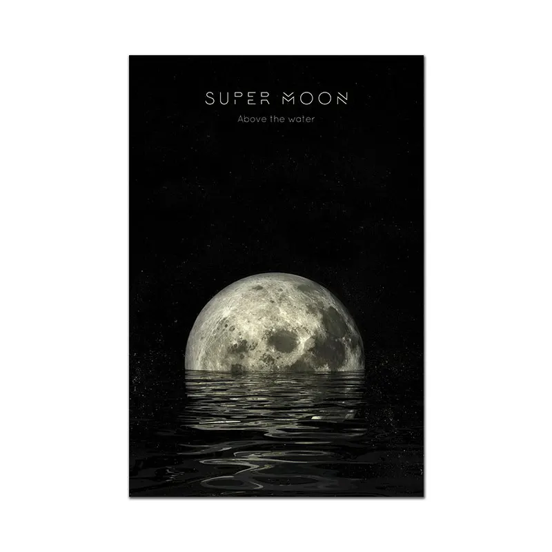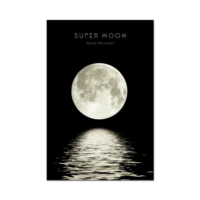 Супер Луна плакат фотография холст живопись черный белый настенные художественные фотографии для гостиной современные декоративные принты на стене Unframe