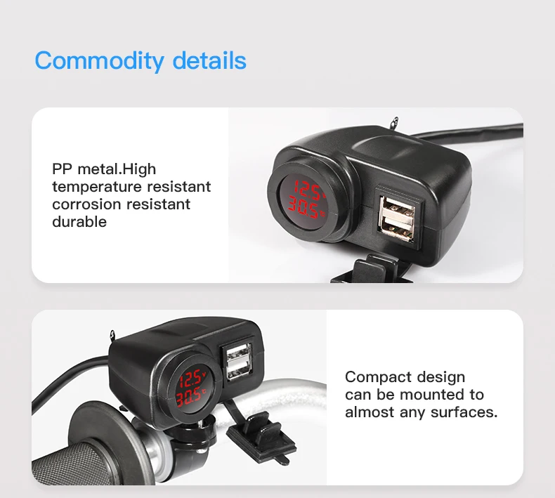 Тип: двойное зарядное устройство usb moto с вольтметром и термометром