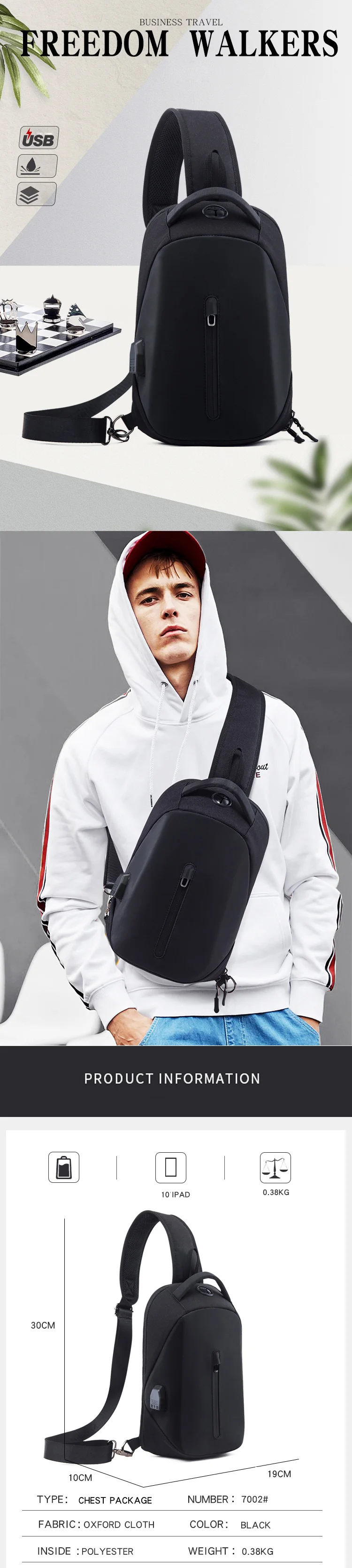 Мужская маленькая нагрудная сумка, противоугонная сумка на плечо, повседневная водонепроницаемая сумка на ремне, модная сумка для телефона, большой кошелек с usb-портом для зарядки